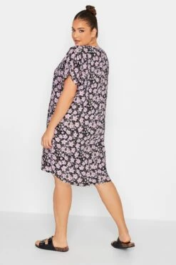 YOURS Curve Black & Pink Floral Print Shift Dress