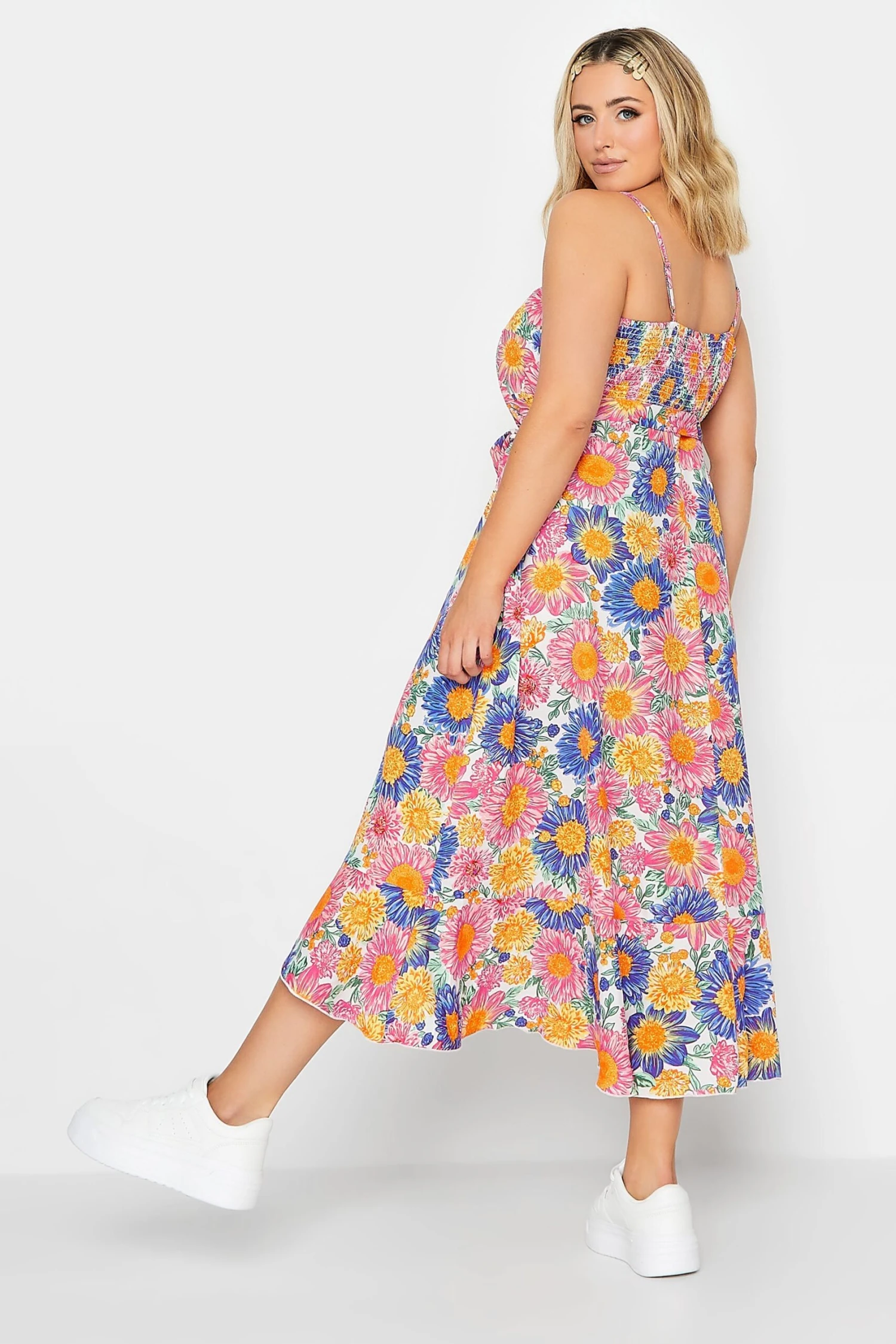 LIMITED COLLECTION Curve Pink Floral Frill Hem Midaxi Dress