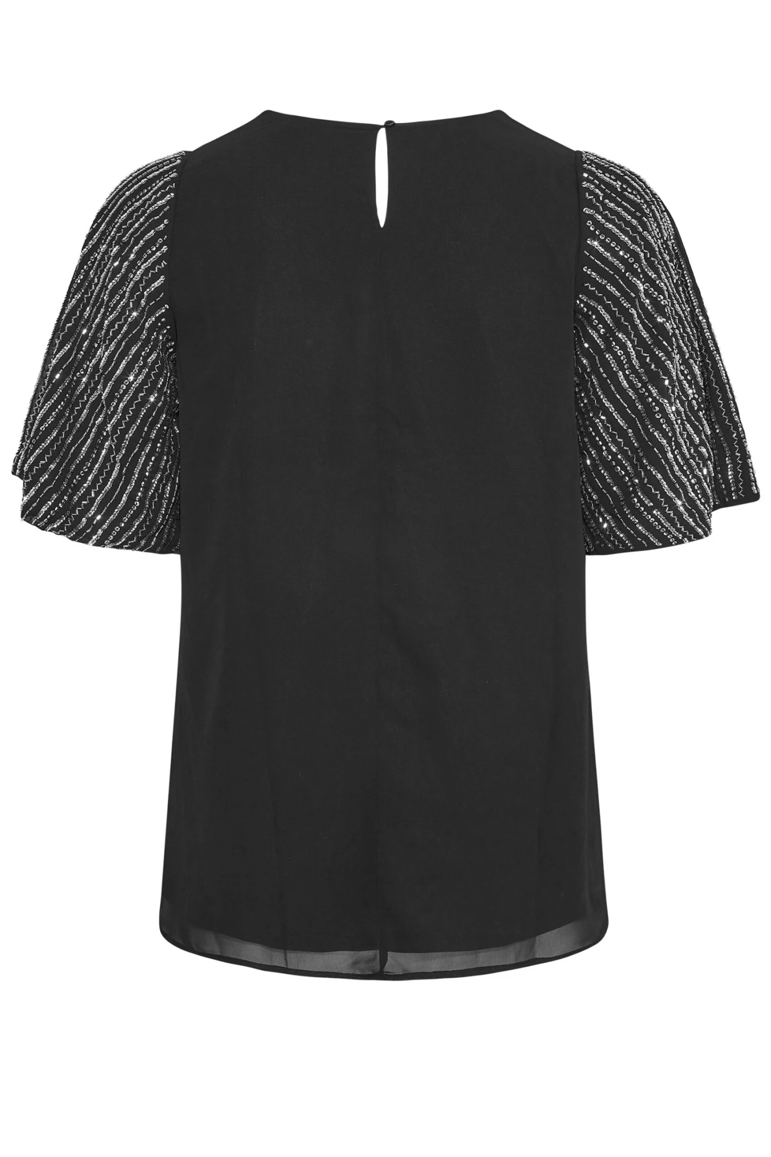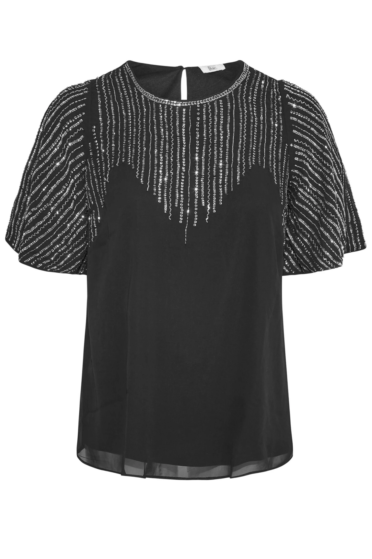 Looking for the perfect going out top? This blouse from Luxe has got you covered. Made from a soft woven fabric, it features sequin hand embellishment with short sleeves and a scoop neckline. Partner with leather look jeans and heels for an effortless, feminine look that is set to fit and flatter your curves.