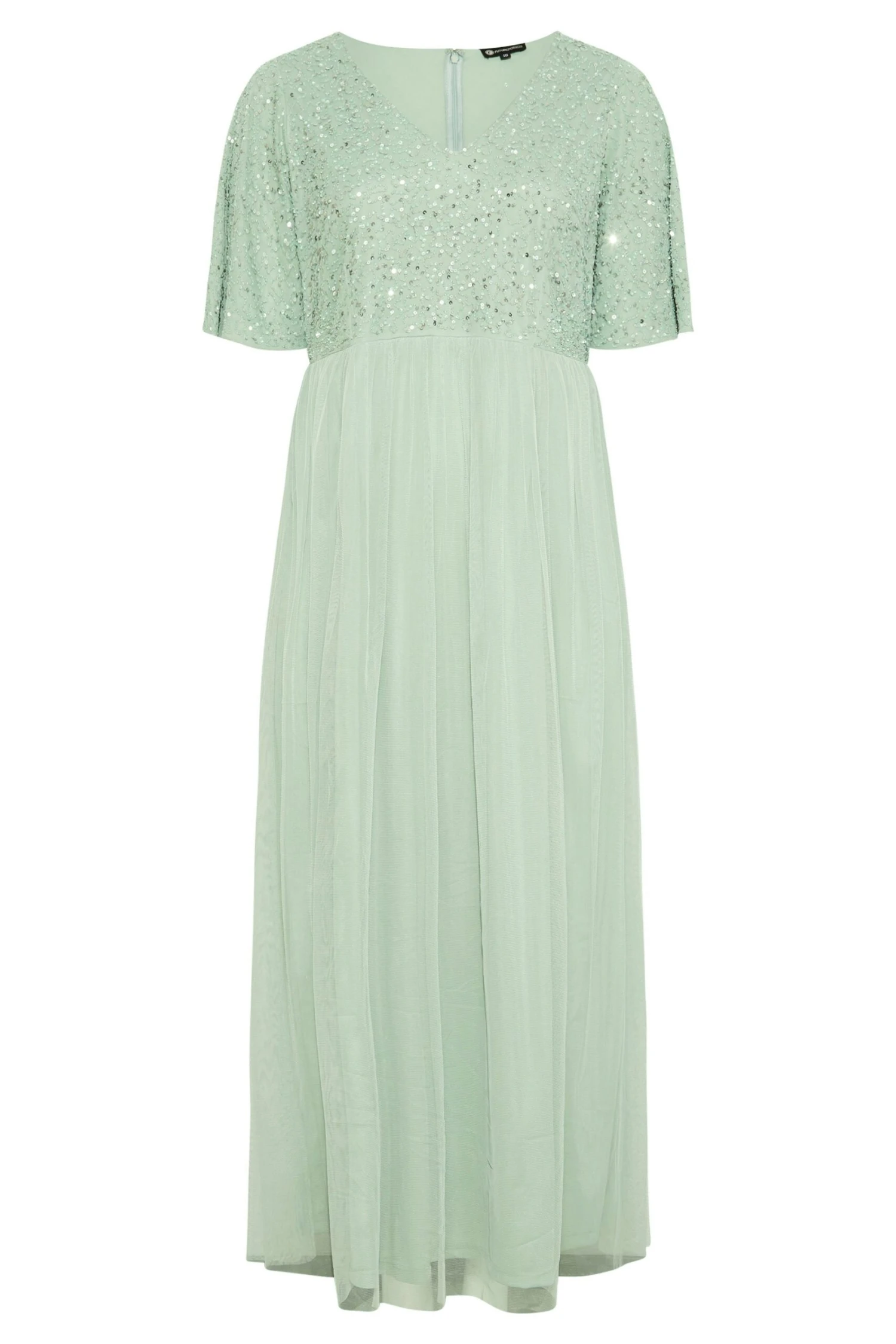 Add some sparkle to your occasionwear collection with this plus size wedding guest dress exclusive to Luxe. Made from a comfortable woven fabric, it features a v-neckline, short angel sleeves, and sequin hand embellishment. Glamorous and flattering, simply add strappy heels and a bag to complement.