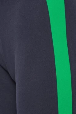 YOURS PETITE Curve Navy Blue & Green Stripe Wide Leg Trousers