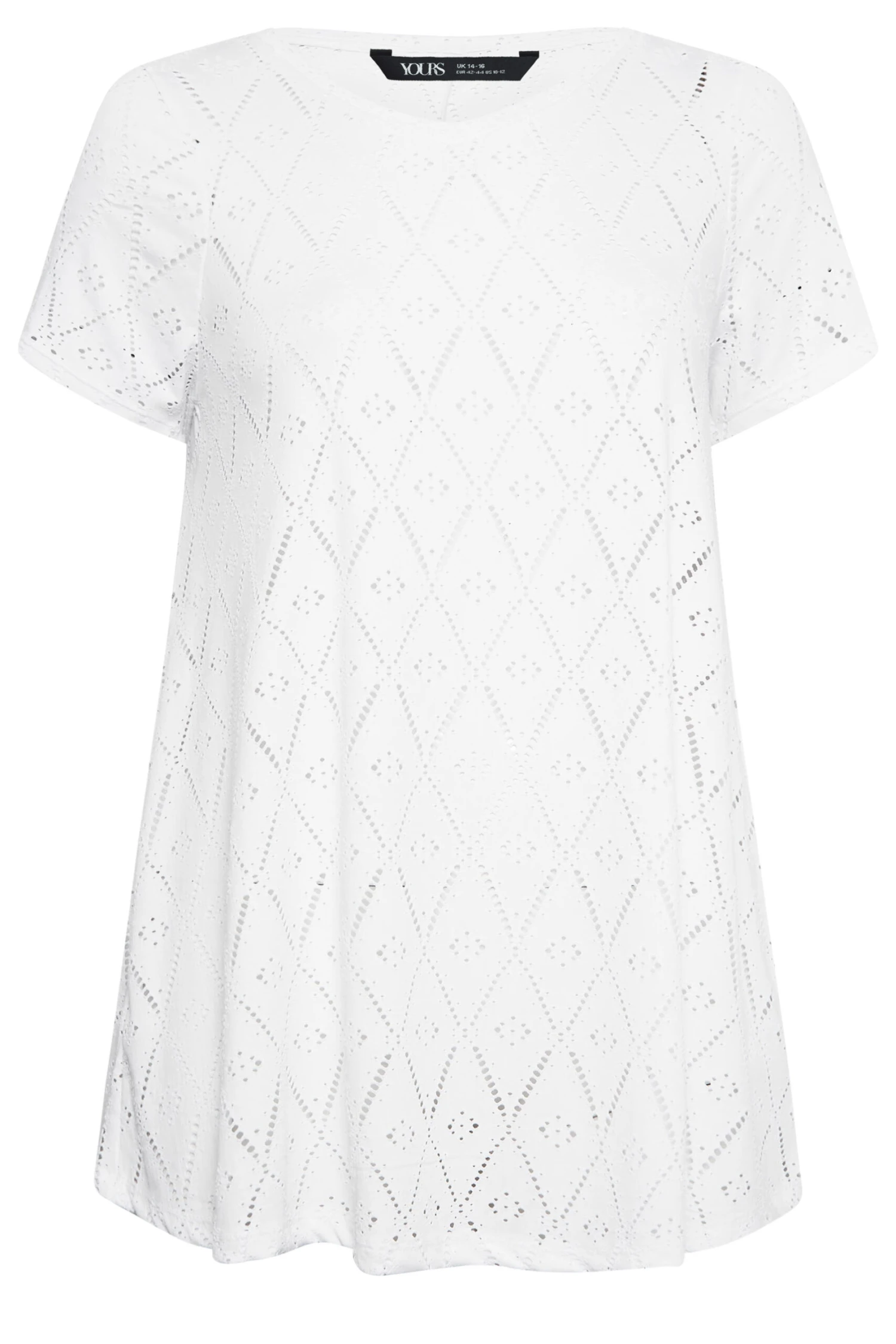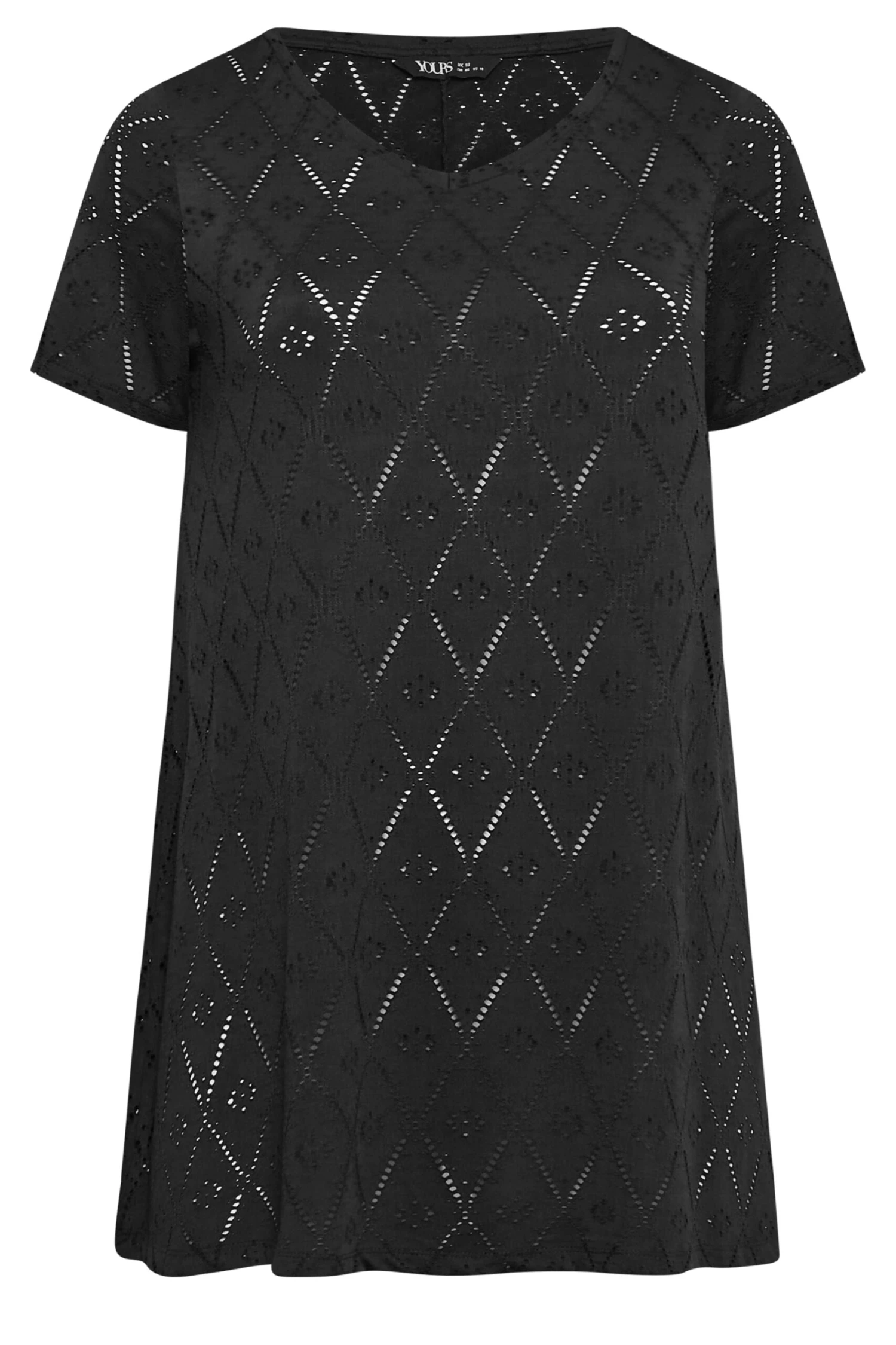 These new-in swing tops were made for dress down days. Made from a comfortable jersey fabric, they feature broderie anglaise detail with short sleeves and a v-neckline. Complete the look with jeans and a trainers for easy off-duty appeal.