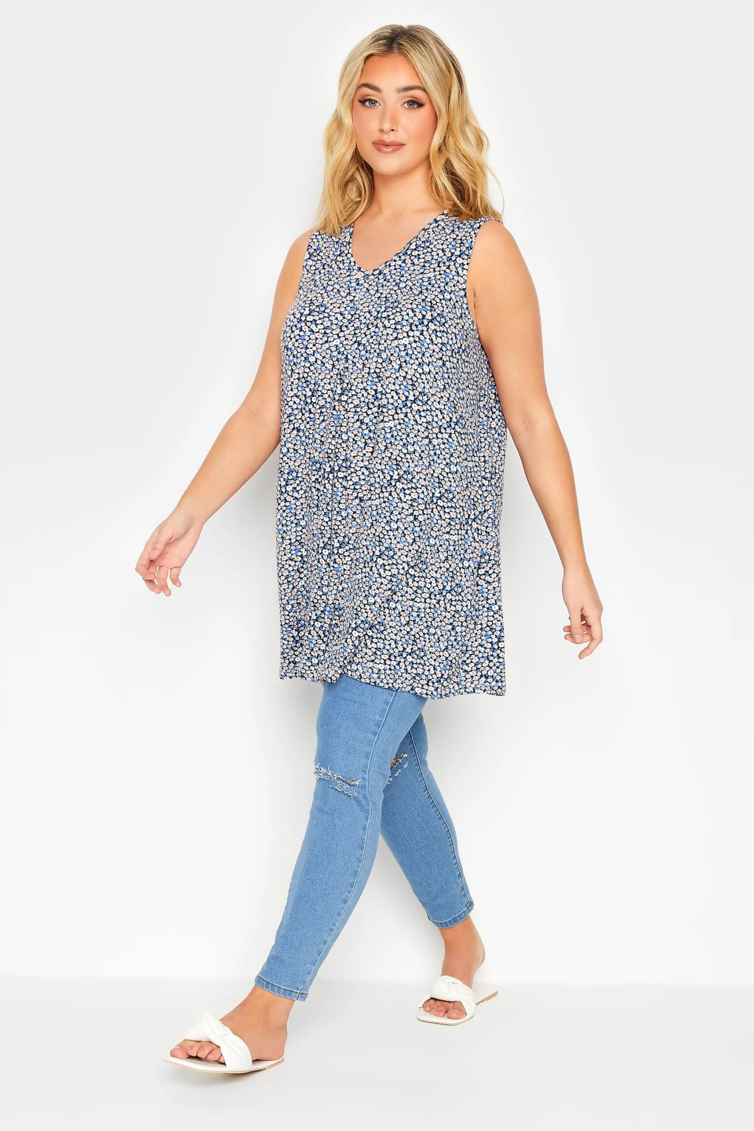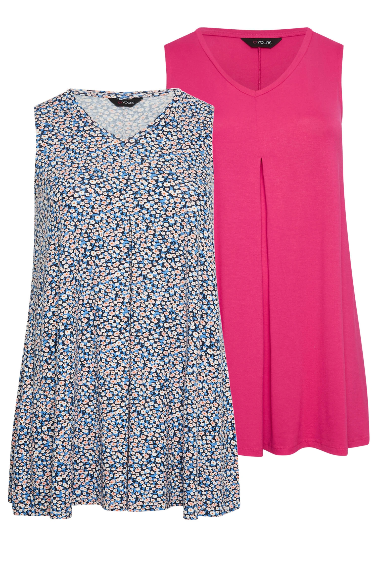 Refresh your essentials with this new-in 2-pack of vest tops. Made from a comfortable jersey fabric, these tops feature a sleeveless look, a v-neckline, a swing style, and a pleat detail. Wear with denim shorts and trainers for a casual summer look!