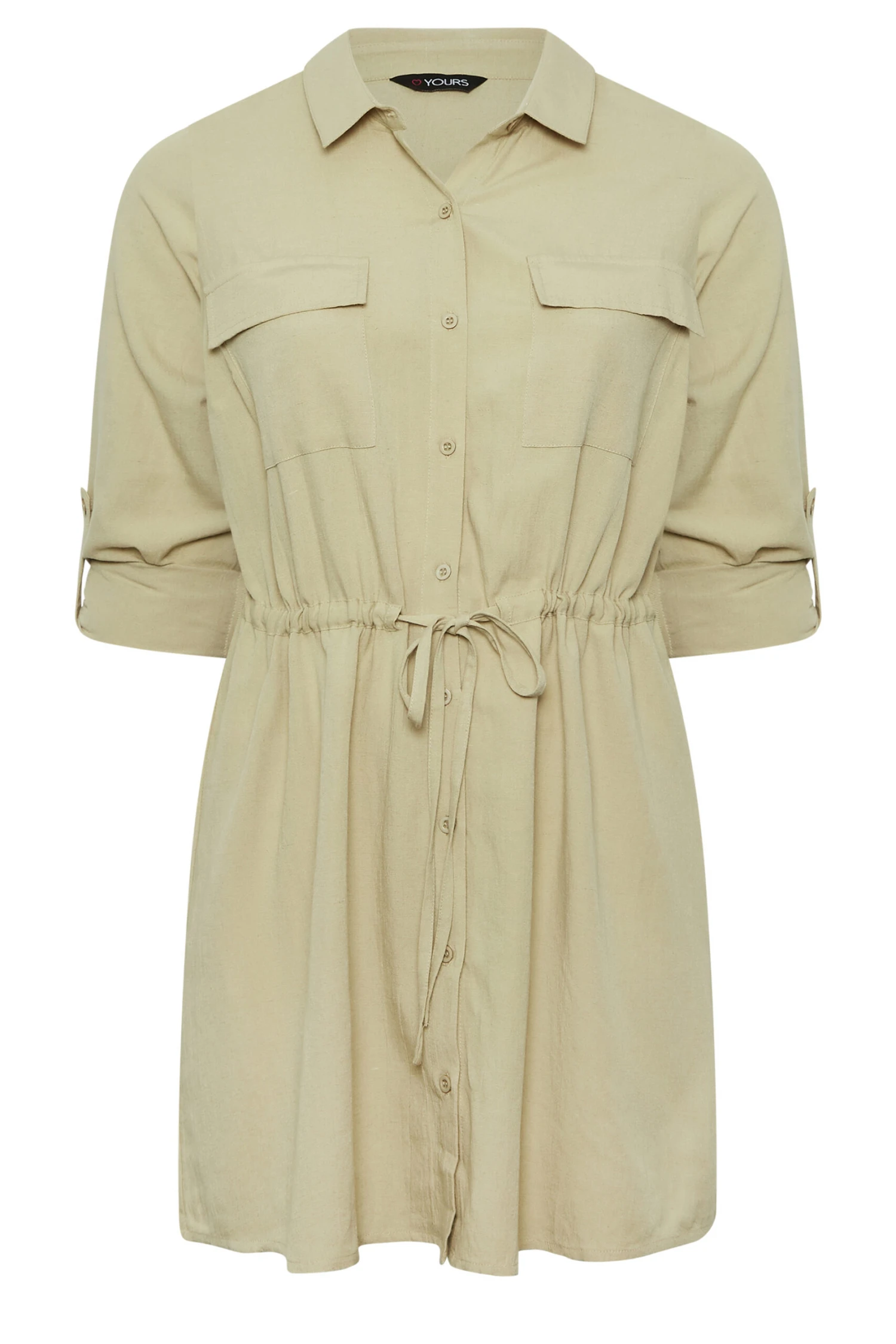 A must-have essential for your wardrobe! Made from a soft linen look fabric, this shirt features 3/4 length sleeves, a tie waist, chest pockets, and a classic collar. Style with leather leggings and black boots for a look you’ll feel confident in!