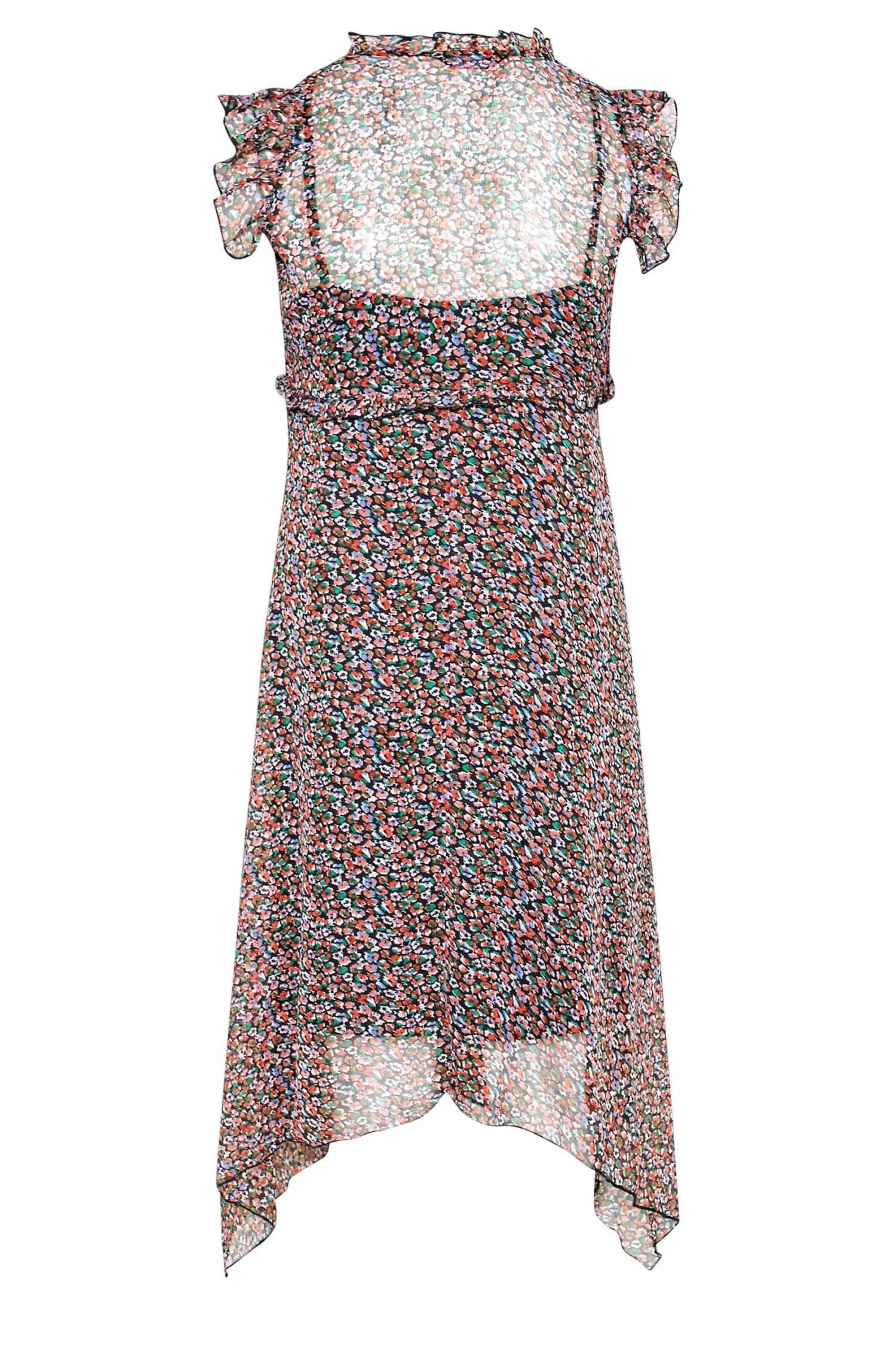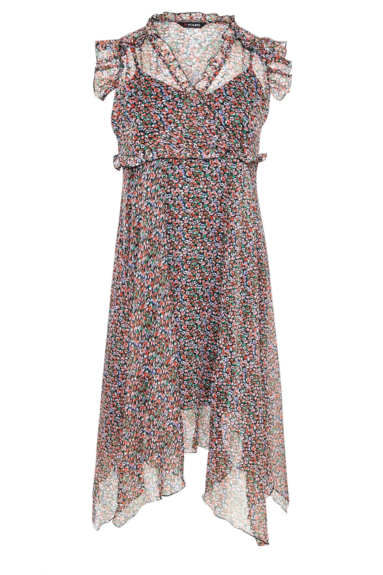 Refresh your occasion wear collection with this floral hanky hem dress. Made from a soft woven fabric, it features frill detail, a wrap v-neckline, hanky hemline and is complete at a midi length. Pair with your go-to heels and clutch bag for a stylish evening outfit.