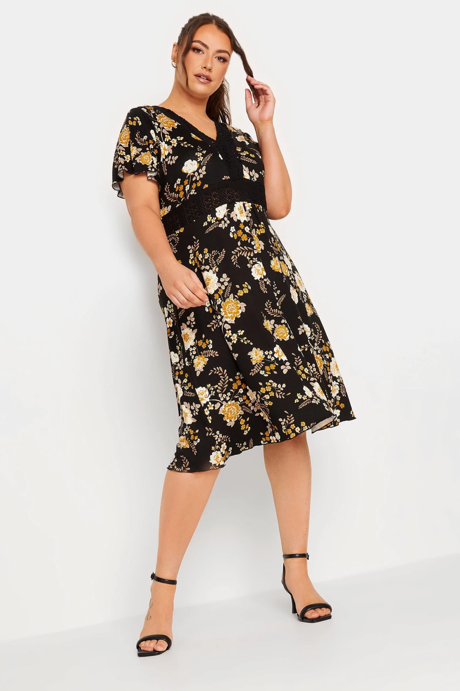 Got a dinner date this weekend? Wear this new-in plus size dress to look and feel your best. Made from a stretch jersey fabric, it features a v-neckline with short sleeves and lace detail, complete in a floral print. Pair with heels and a clutch bag to finish the look.
