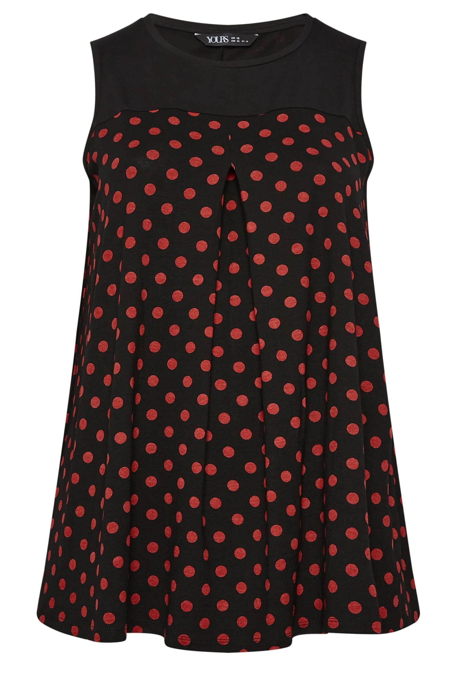 This new-in vest top is a must-have addition to your wardrobe. Made from a stretch jersey fabric, it features a scoop neckline in a sleeveless design with a polka dot print front, complete with a pleat front detail. Team with denim shorts for a daytime summer look.