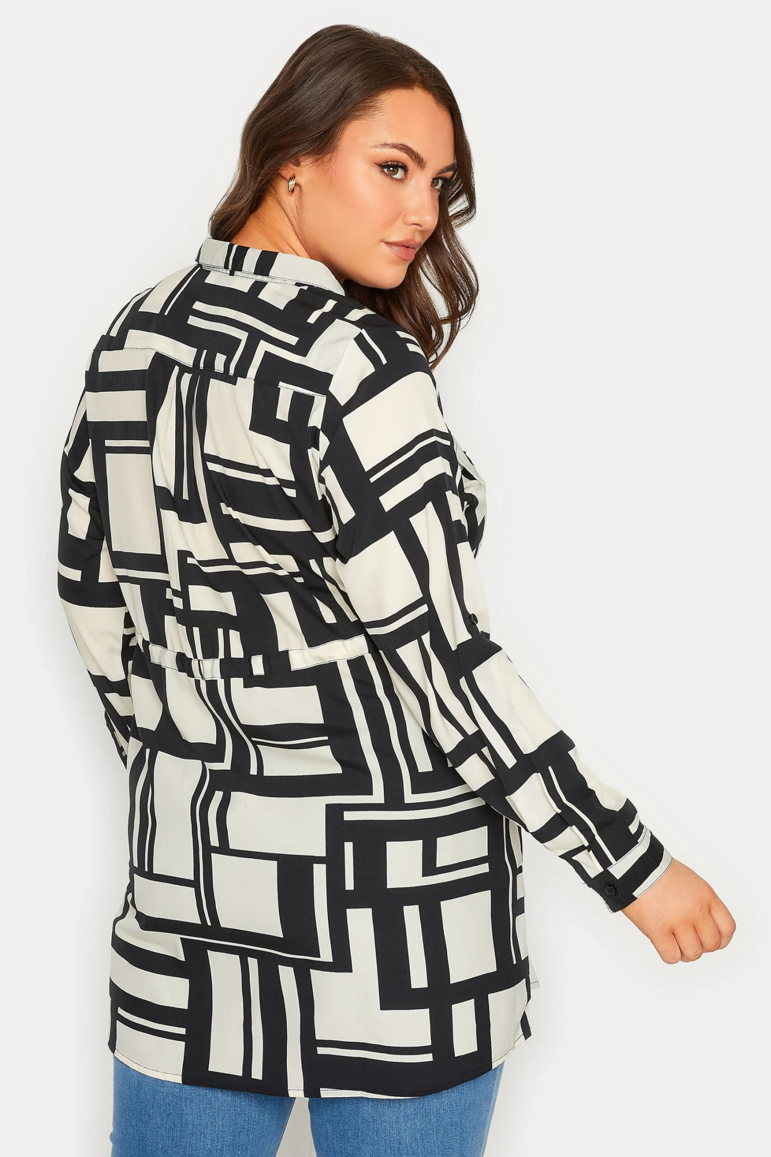 You’ll want to wear this must-have blouse on repeat this season. Made from a comfortable woven fabric, it features a geometric print with an adjustable drawstring waist and two utility pockets. Simply team with jeans and boots for a look that will take you from desk-to-dinner in style.
