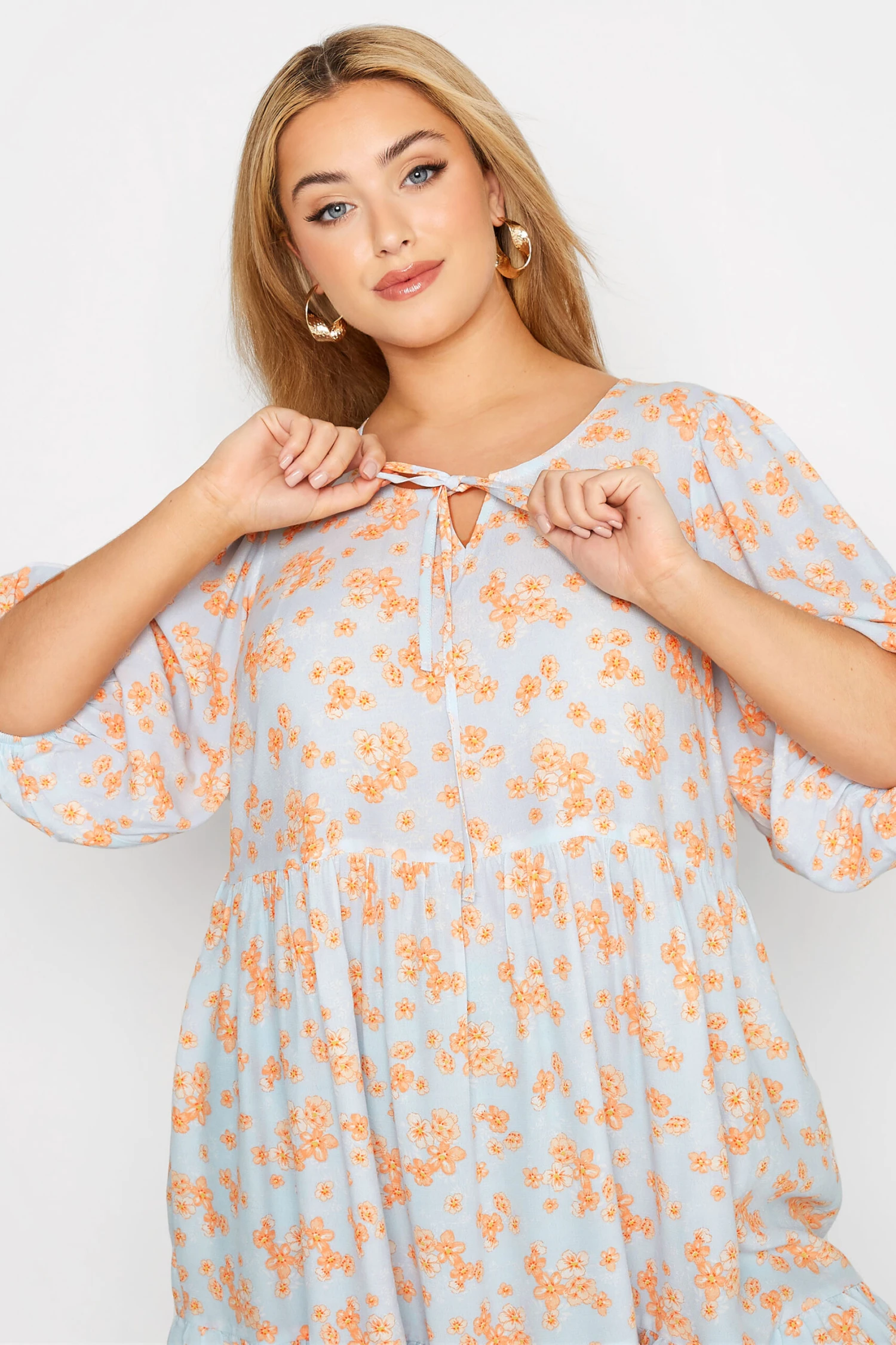 Add a new floral print to your tops collection with this top. Made from a soft woven fabric, this plus size top features a tie neck, 3/4 length sleeves, and is complete in a smock style. Team with jeans and sandals for look that is perfect for your weekend plans.