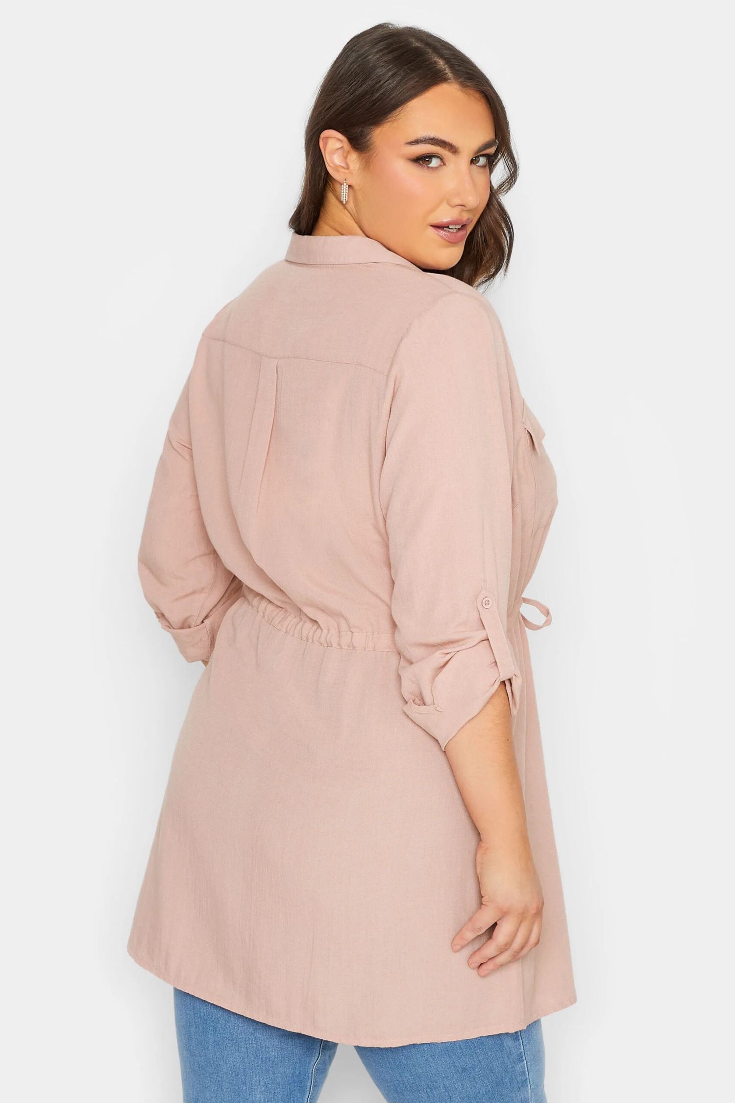 A must-have essential for your wardrobe! Made from a soft woven fabric, this shirt features 3/4 length sleeves, a tie waist, chest pockets, and a classic collar. Style with leather leggings and black boots for a look you’ll feel confident in!