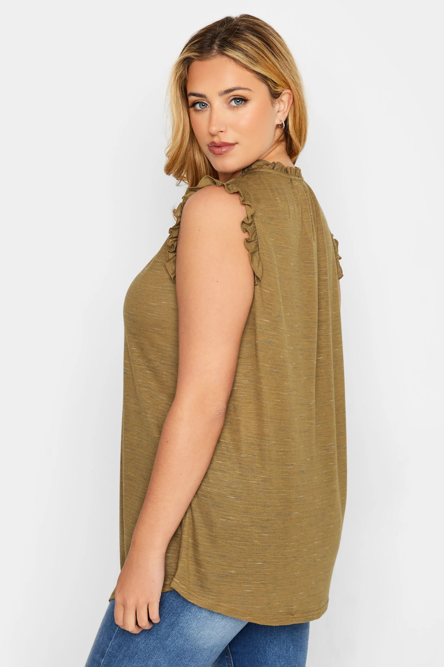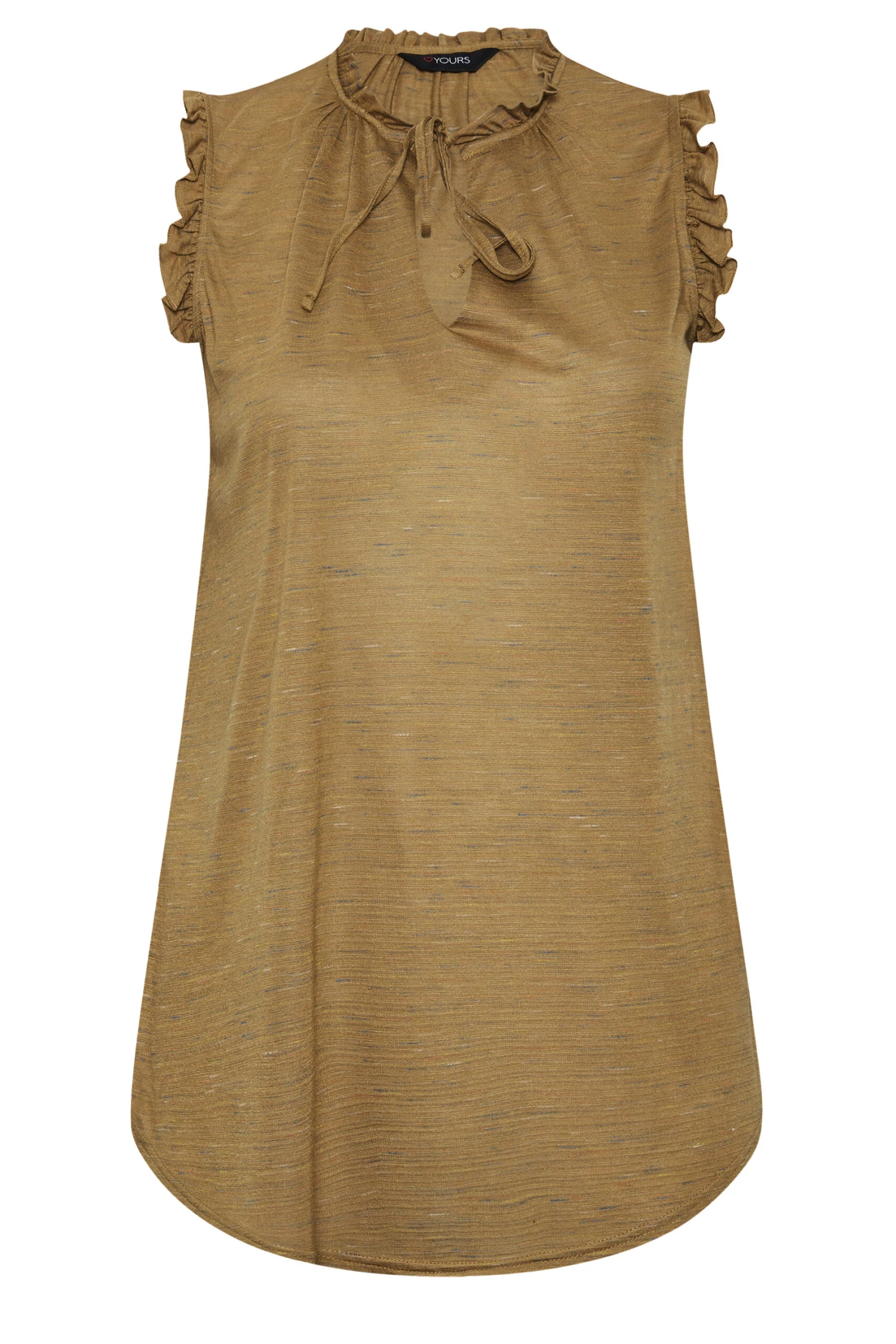 Start the new year in style with this plus-size frill blouse. Made from a comfortable jersey fabric, it features an adjustable neck tie in a v-neckline with frill sleeve detail, complete in a marl finish. Style with jeans and trainers for a casual, off-duty outfit.