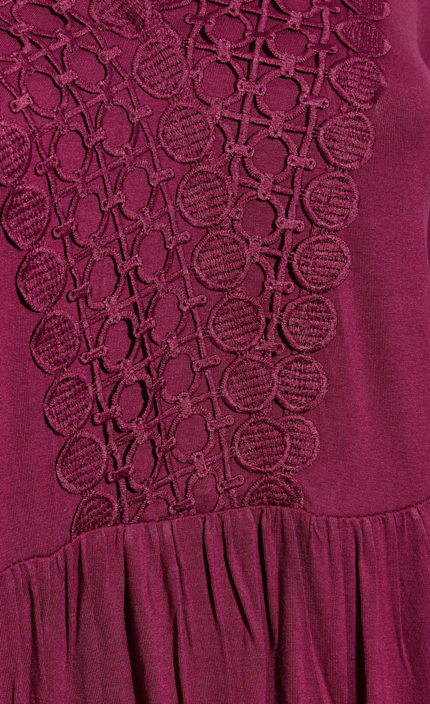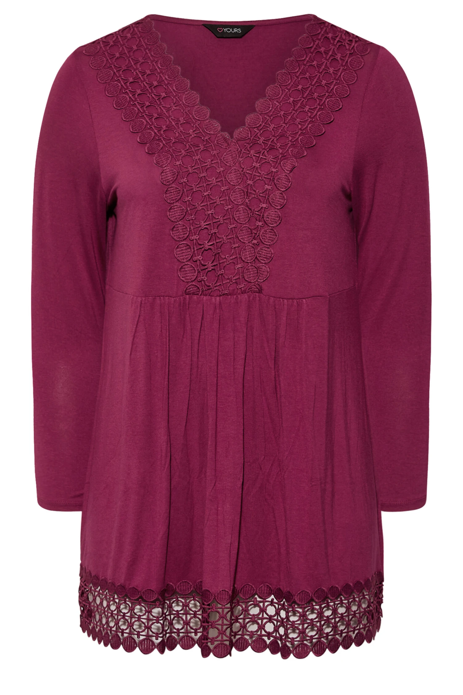 Refresh your wardrobe with this new-in tunic. Made from a comfortable jersey fabric, it features long sleeves, a v-neckline and is finished with crochet detailing. Partner with jeans and heels for the perfect weekend look.