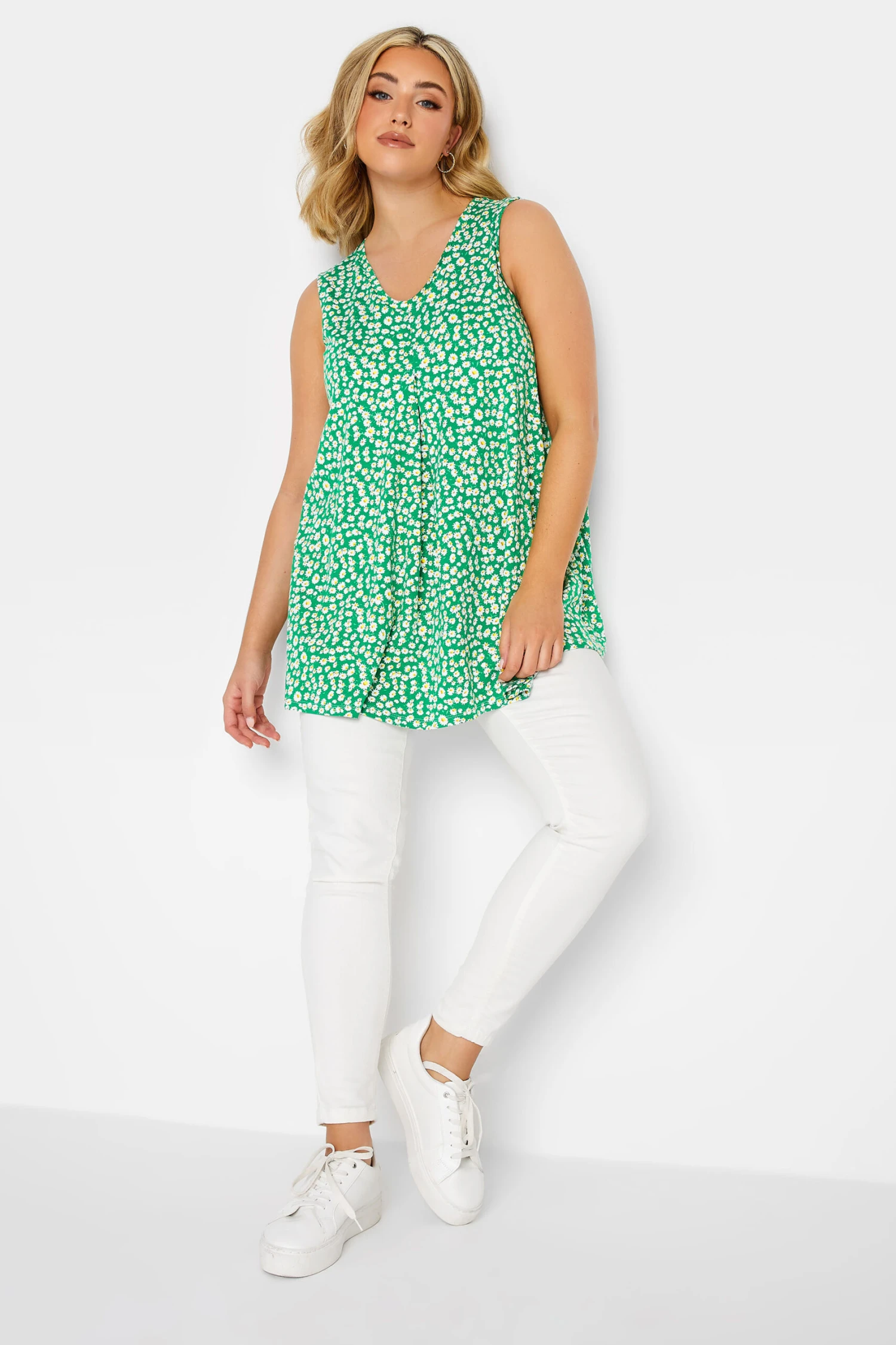 YOURS Curve Green Daisy Print Pleat Front Vest Top