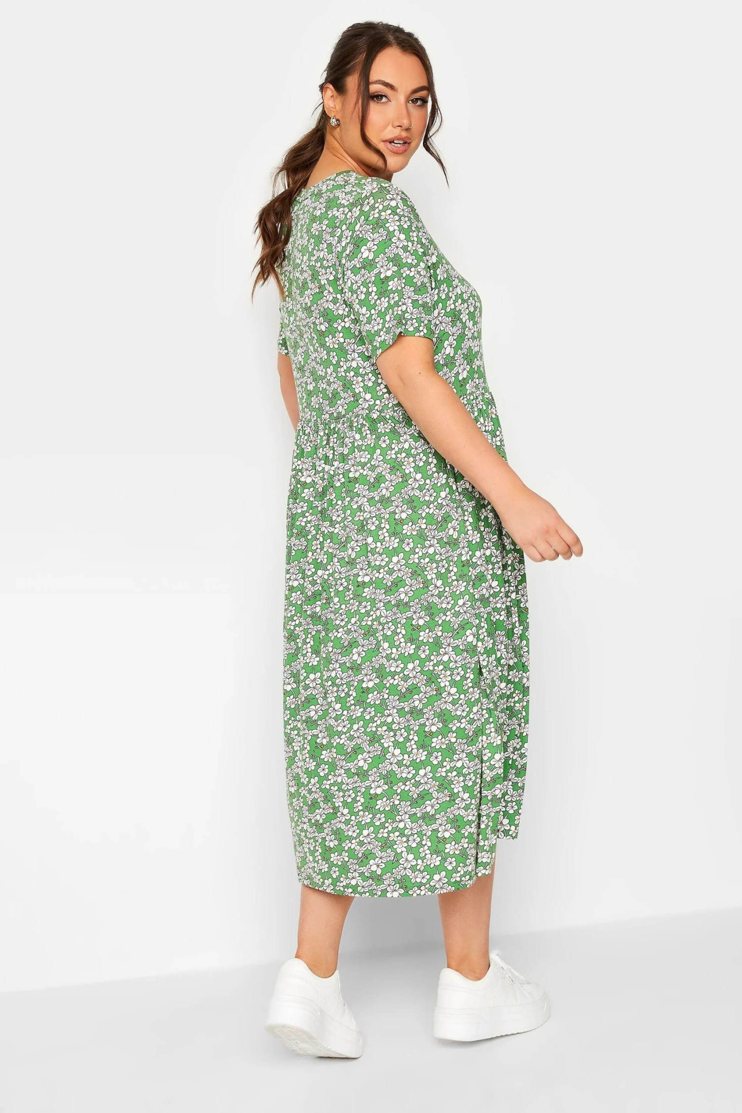Enjoy the sun in style with this new-in midi dress. Made from a comfortable jersey fabric this dress features a floral design, short sleeves, a smock style, and a scoop neckline. Wear with trainers for a casual summer look.