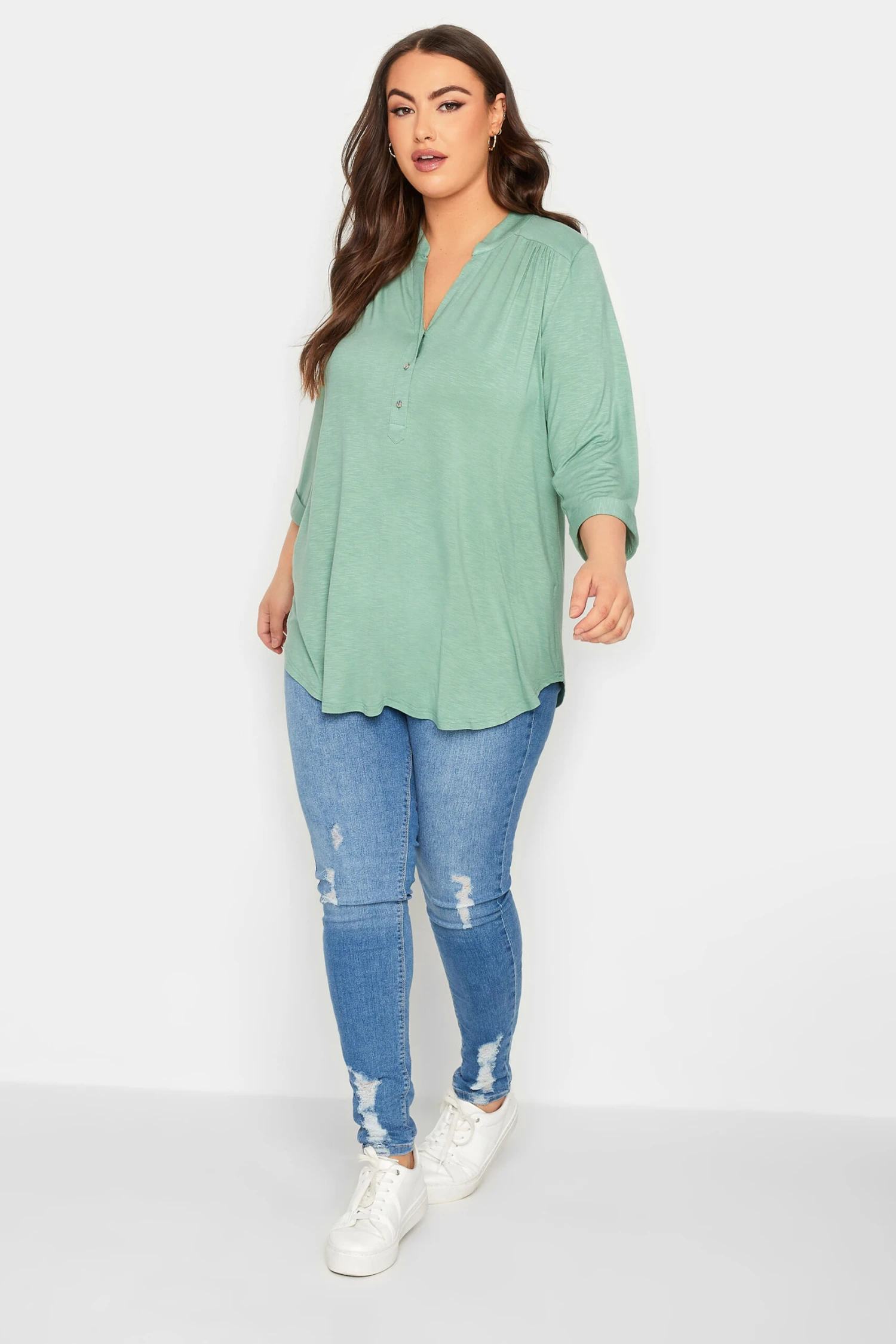 Refresh your jersey top collection! Made from a comfortable jersey fabric this top features long sleeves, a v-neckline, and a button detail half placket look. Style with jeans and trainers for a comfortable everyday look.