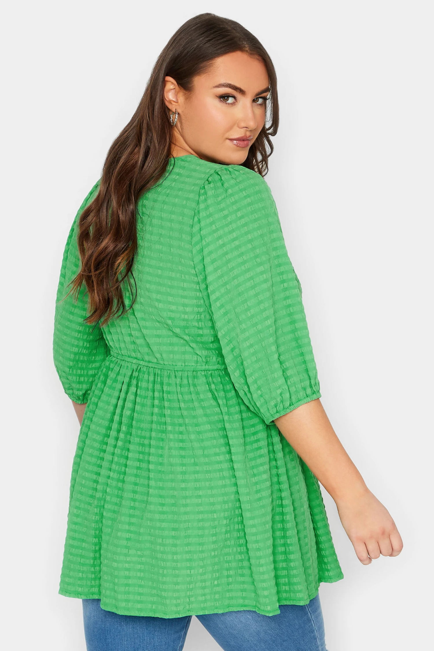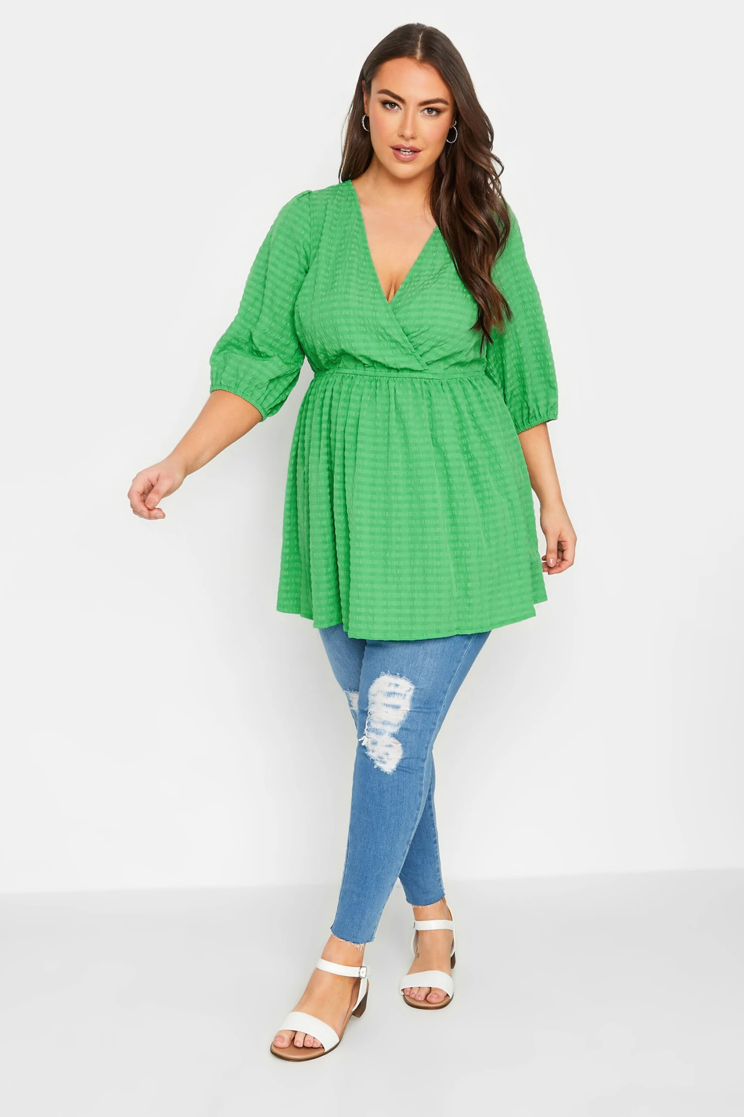 In need of a wardrobe refresh? Look no further than this plus size long sleeve wrap top. Made from a comfortable woven fabric this top features a textured design, 3/4 length sleeves, a v-neckline and a wrap style. Wear with jeans and heels for the perfect day drinks look.