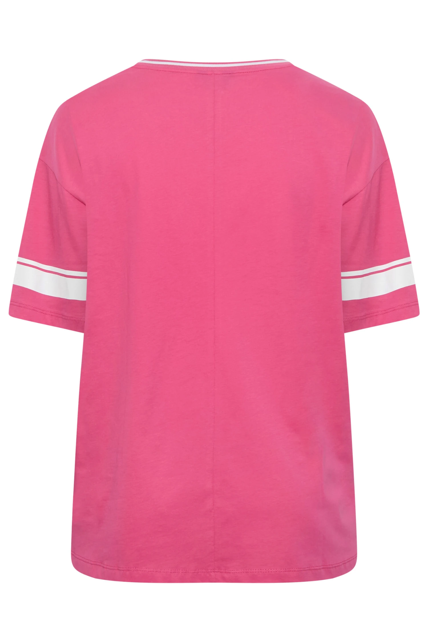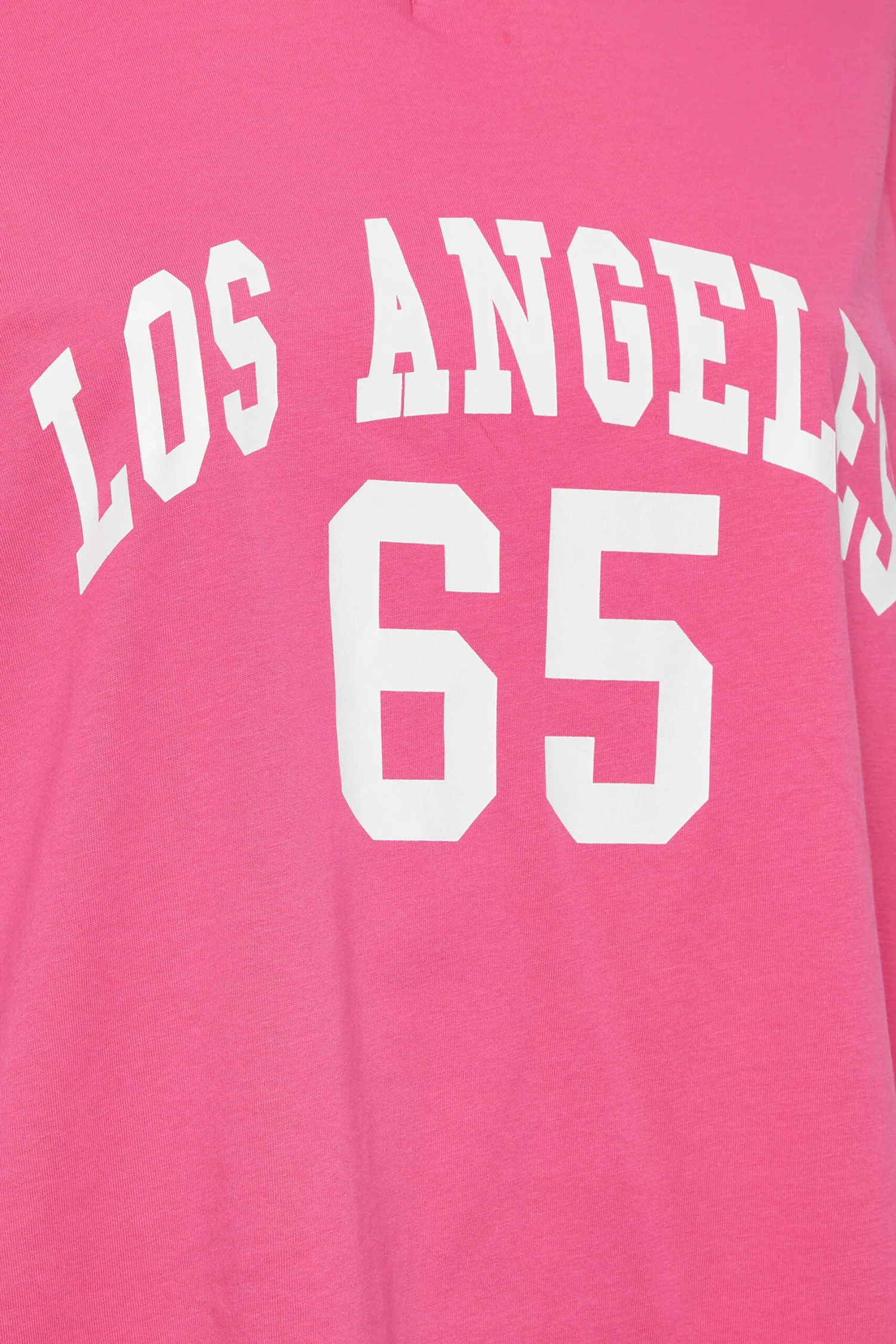 This new-in plus size varsity top will be your new favourite daytime staple. Made from comfortable cotton fabric, this top features short sleeves, a ‘Los Angeles’ slogan, and a v-neckline. Style with shorts and trainers for a comfortable everyday look.