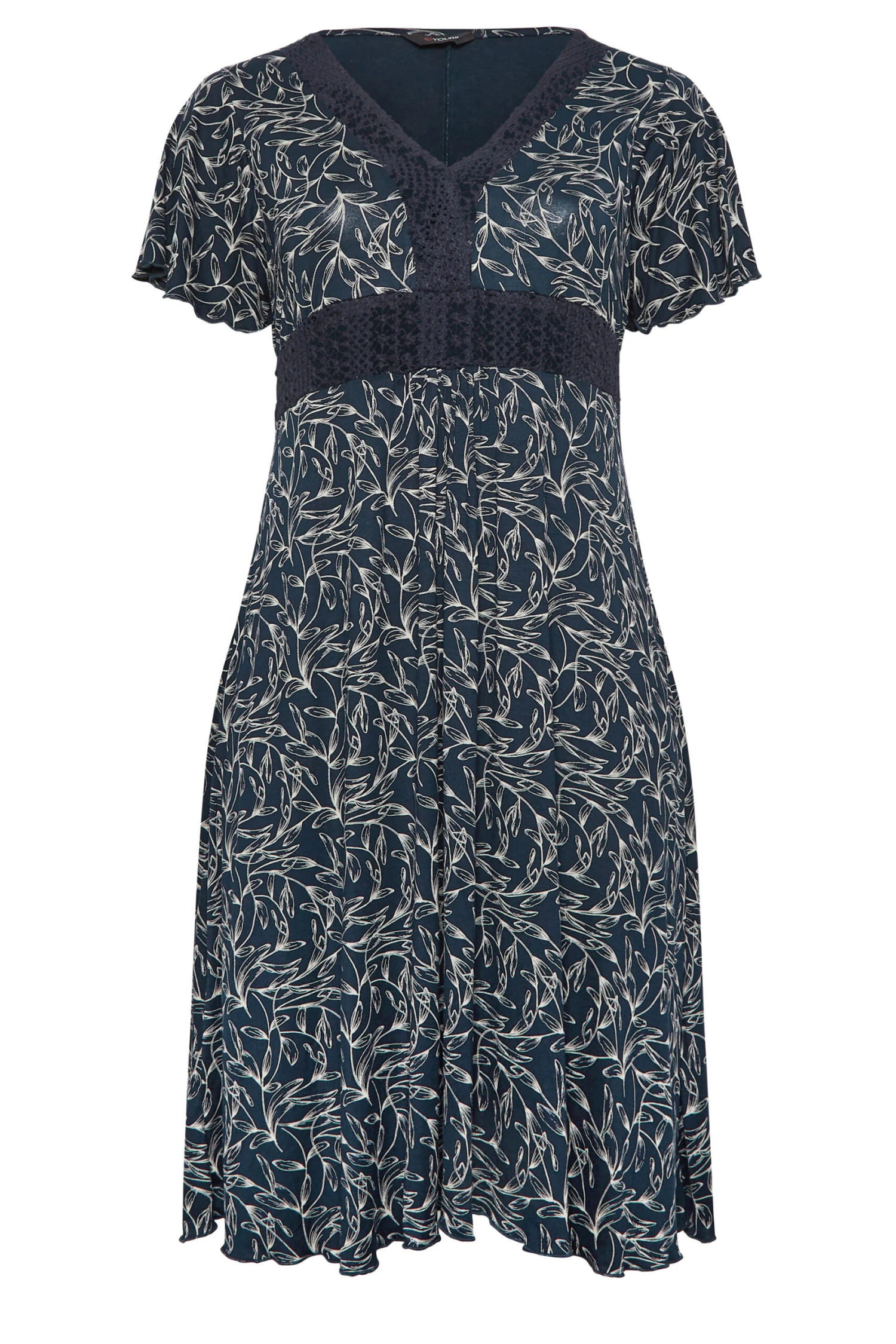 Got a dinner date this weekend? Wear this new-in plus size dress to look and feel your best. Made from a stretch jersey fabric, it features a v-neckline with short sleeves and lace detail, complete in a leaf print. Pair with heels and a clutch bag to finish the look.