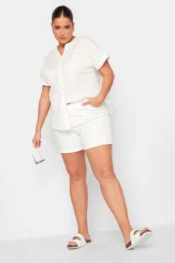 A must-have essential for your wardrobe! Made from a comfortable woven fabric, this shirt features a crinkle fabric design with short sleeves, a classic collar, and a button up detail. Style with jeans and heeled sandals for an elevated casual look.