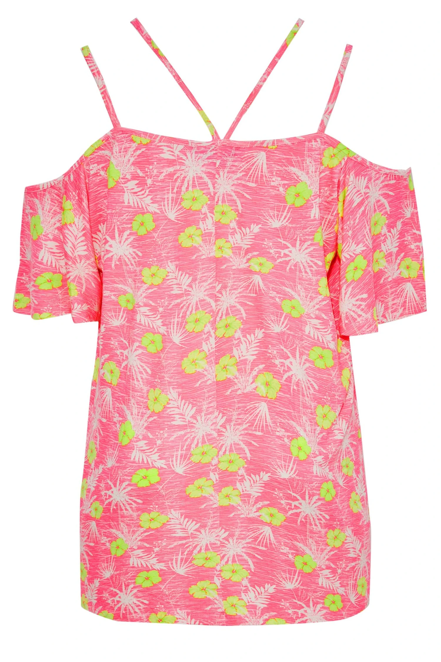 YOURS Curve Pink Floral Strappy Cold Shoulder Top