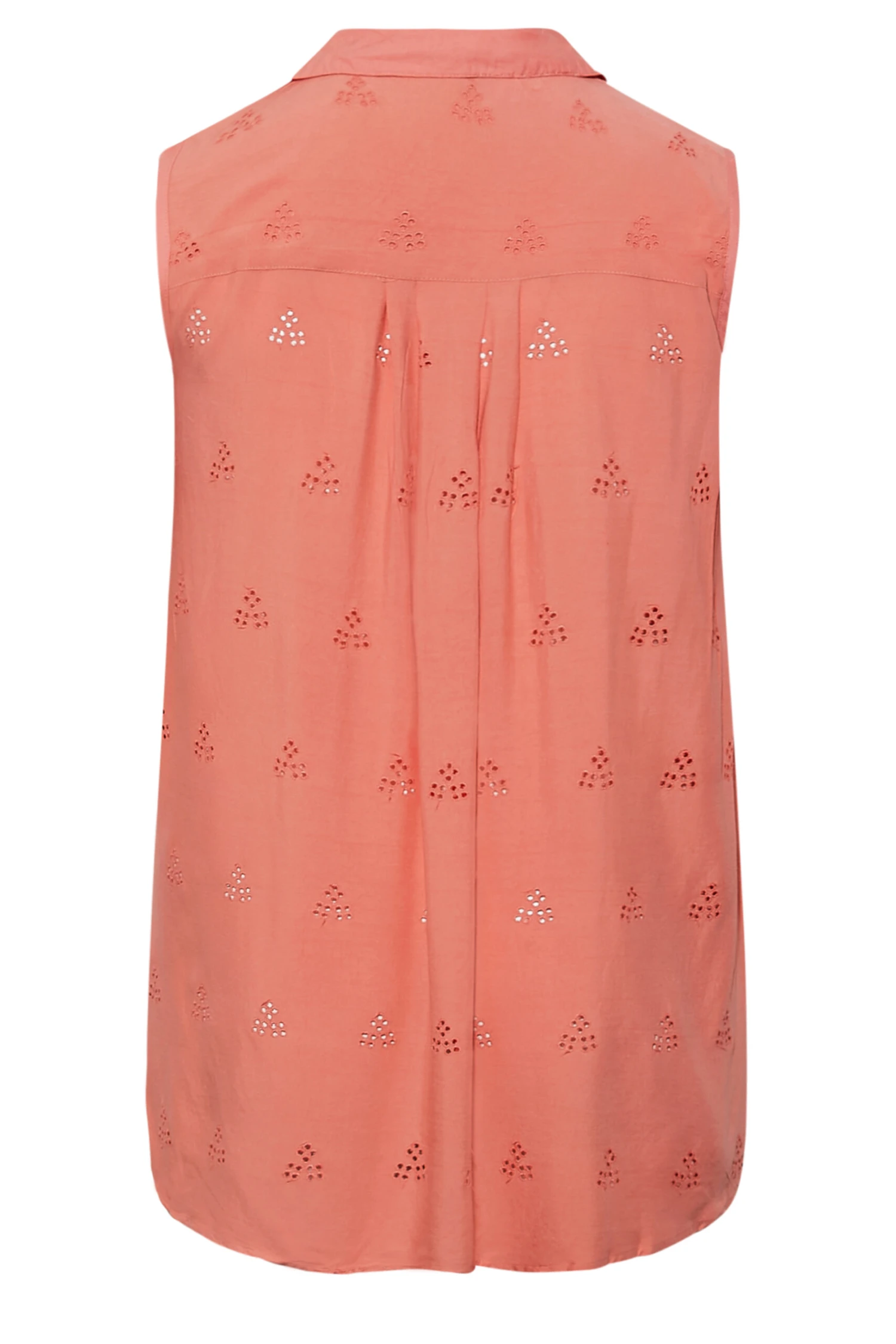 Freshen up your wardrobe with this swing shirt. Patterned with broderie anglaise, it features a classic collar, pleats at the back and a sleeveless swing design. Style with jeans and heels for a smart casual look.