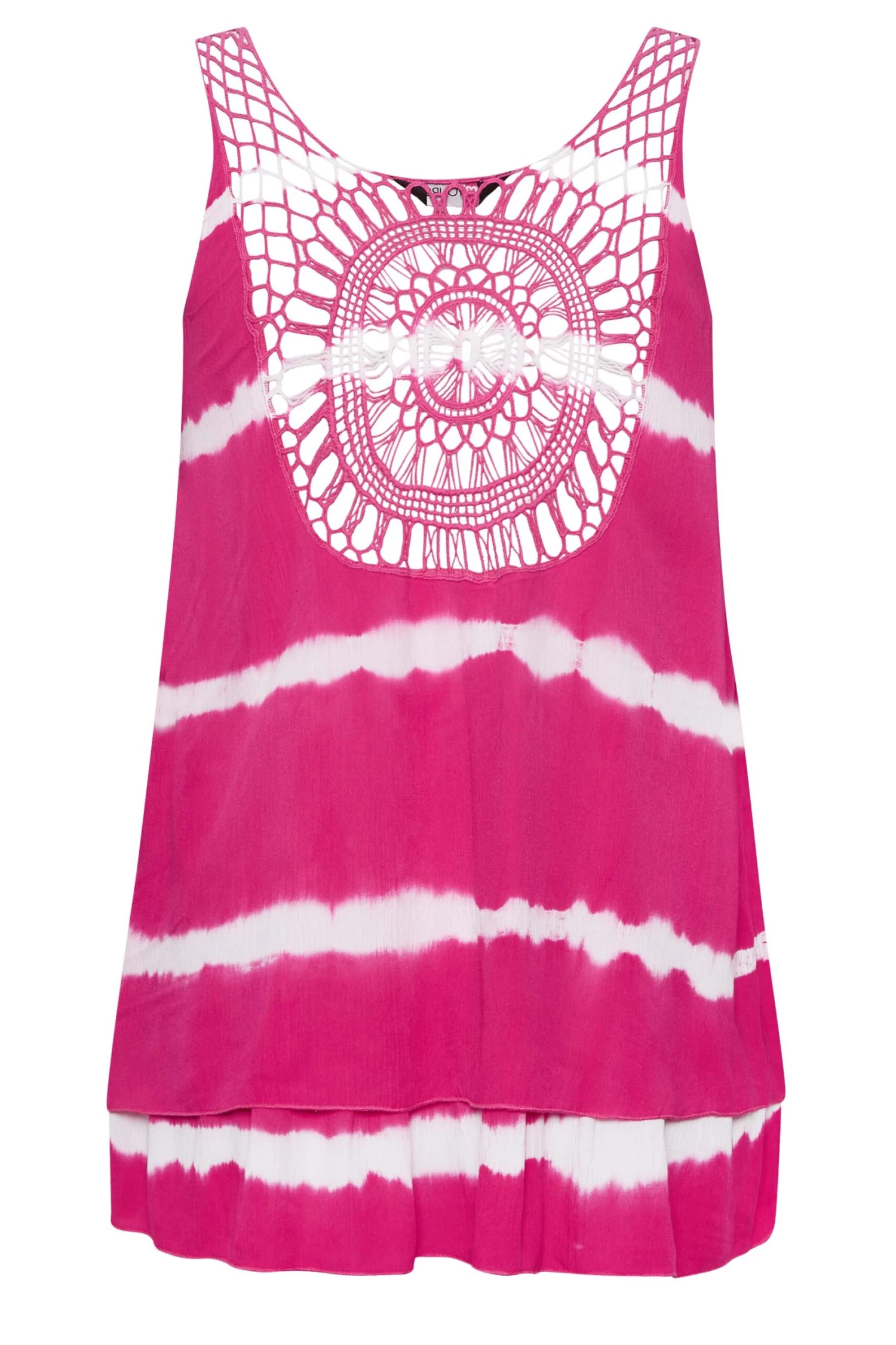 Make some room in your wardrobe for this new-in plus size vest top. Made from a crinkle woven fabric, it features a crochet back detail in a sleeveless design. Complete the look with shorts and sandals for a casual outfit.
