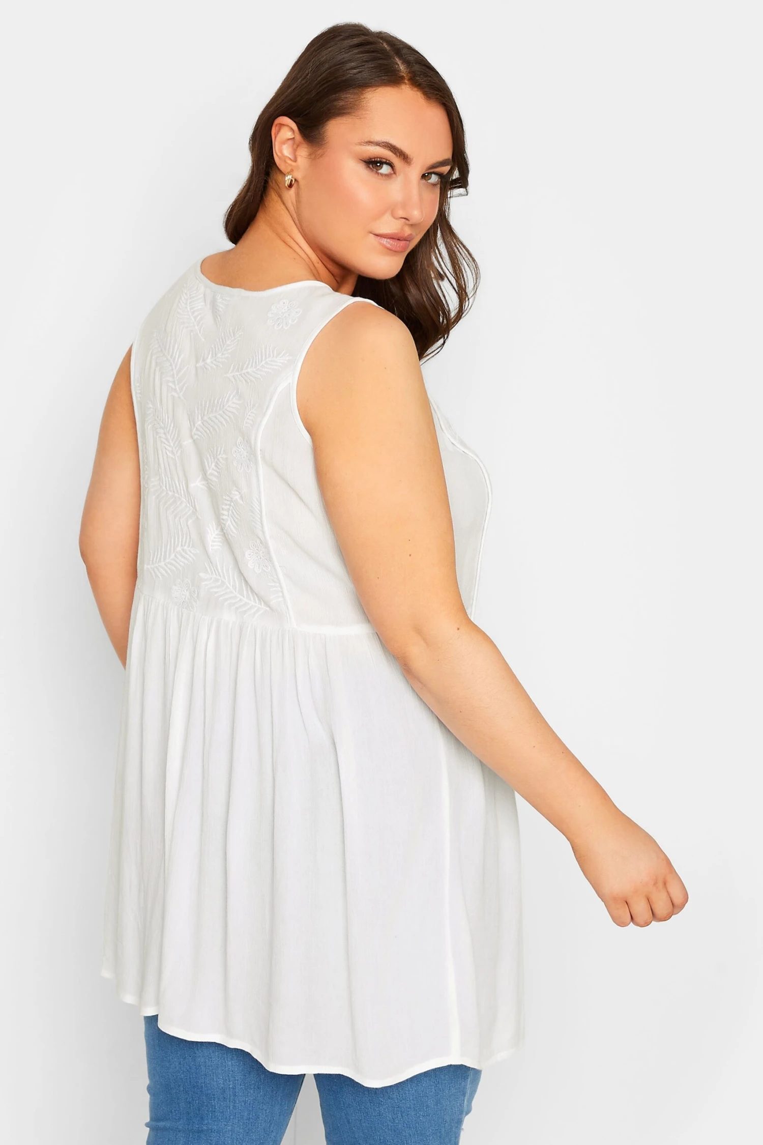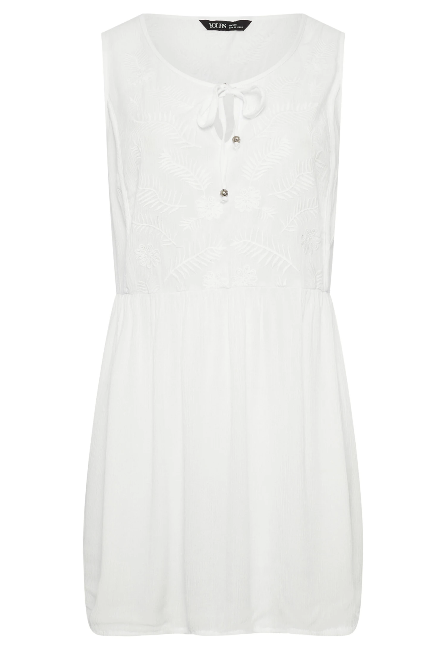 Going for a day out? This new-in peplum vest top is your go-to. Made from a comfortable woven fabric, it features an embroidered design with a neck tie detail in a sleeveless style. Team with jeans and sandals for a stylish look.