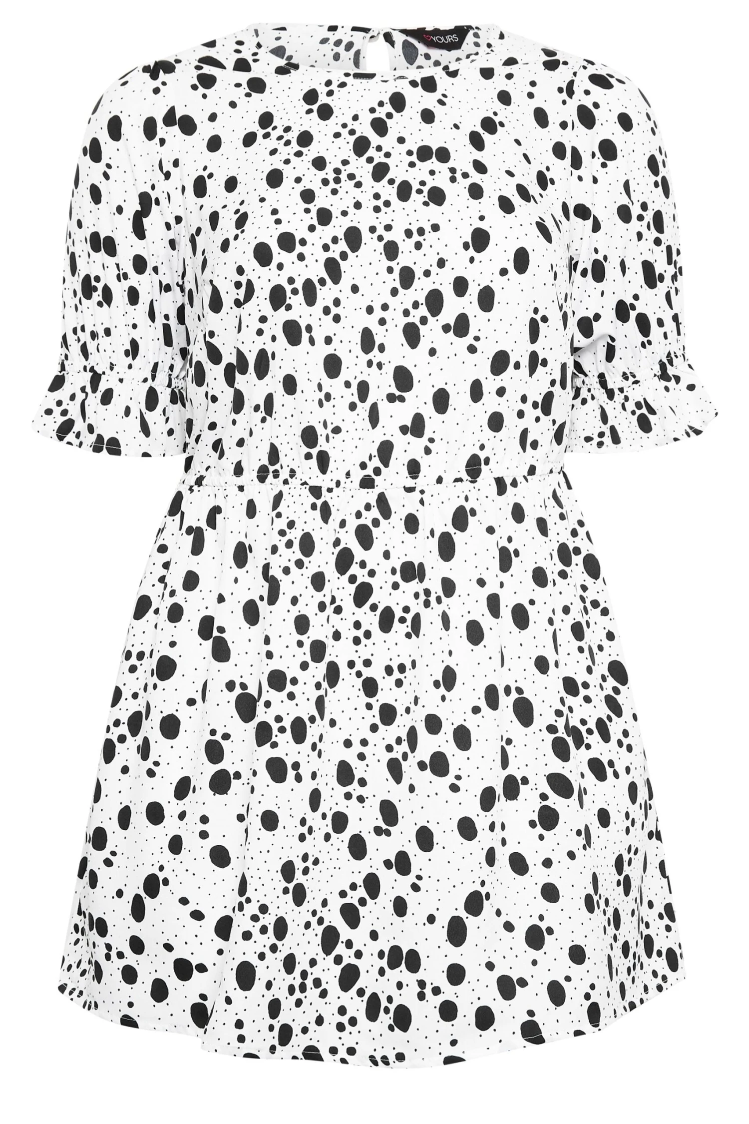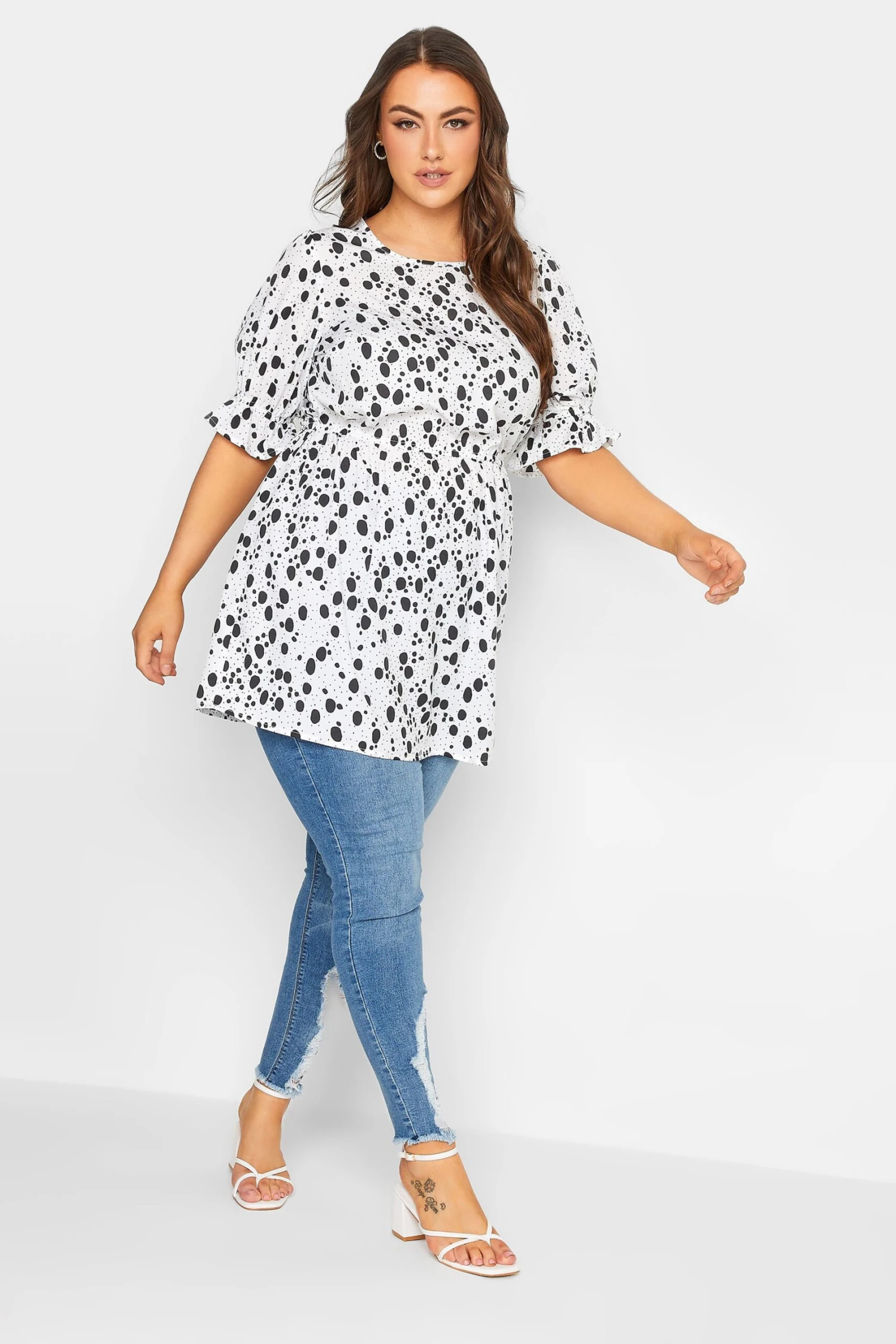 Make some room in your wardrobe for this new-in blouse. Made from a comfortable woven fabric, it features a scoop neckline, short puff sleeves, and an elasticated waistband, complete in a polka dot print. Simply style with jeans and heels to finish the look.