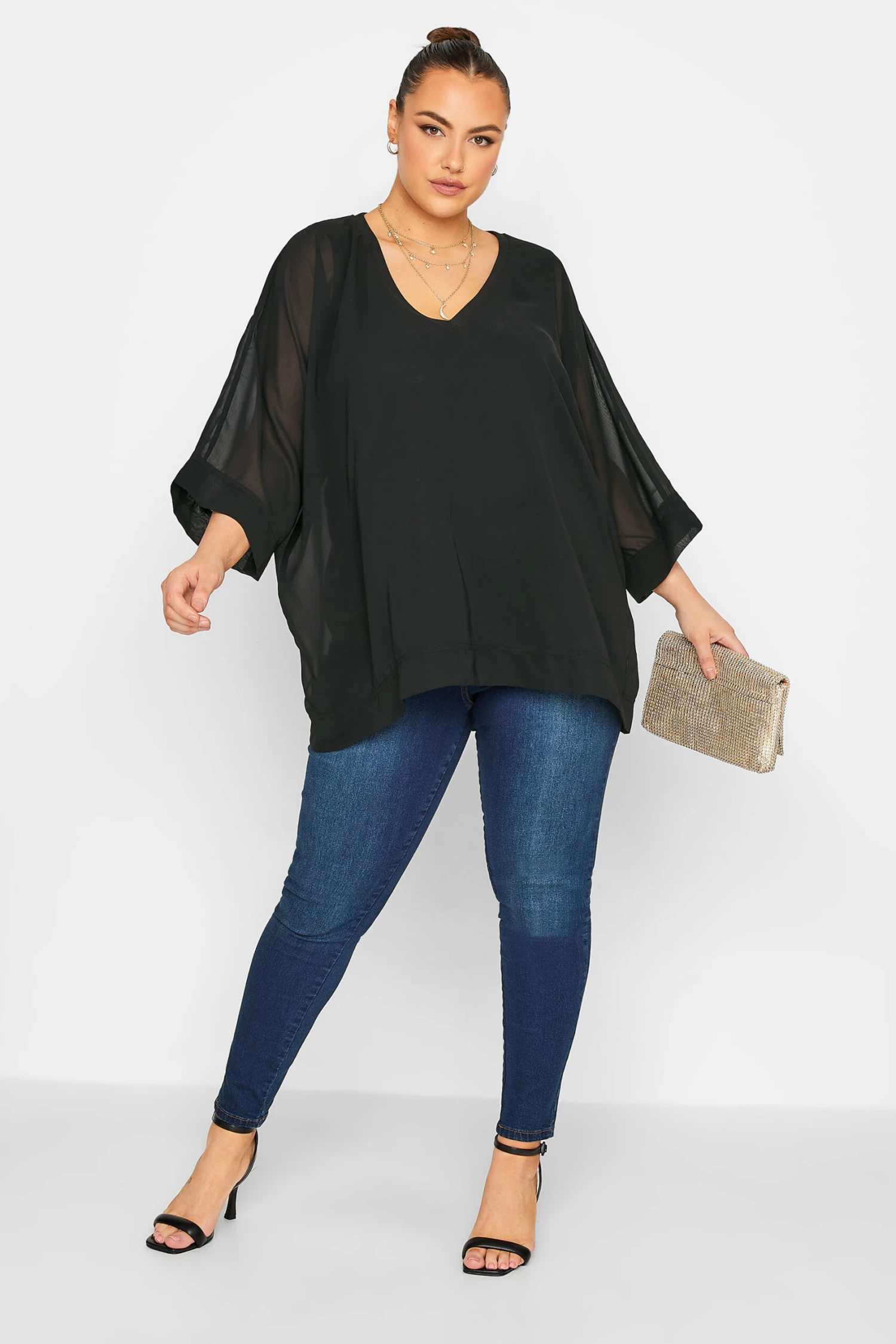 Hit refresh on your weekend wardrobe with this Yours London top. Made from a soft woven fabric, this plus size top features 3/4 length sleeves, a sheer outer layer and is complete in a cape style design. Pair with jeans and heels for a look you can wear with confidence on your next date night.
