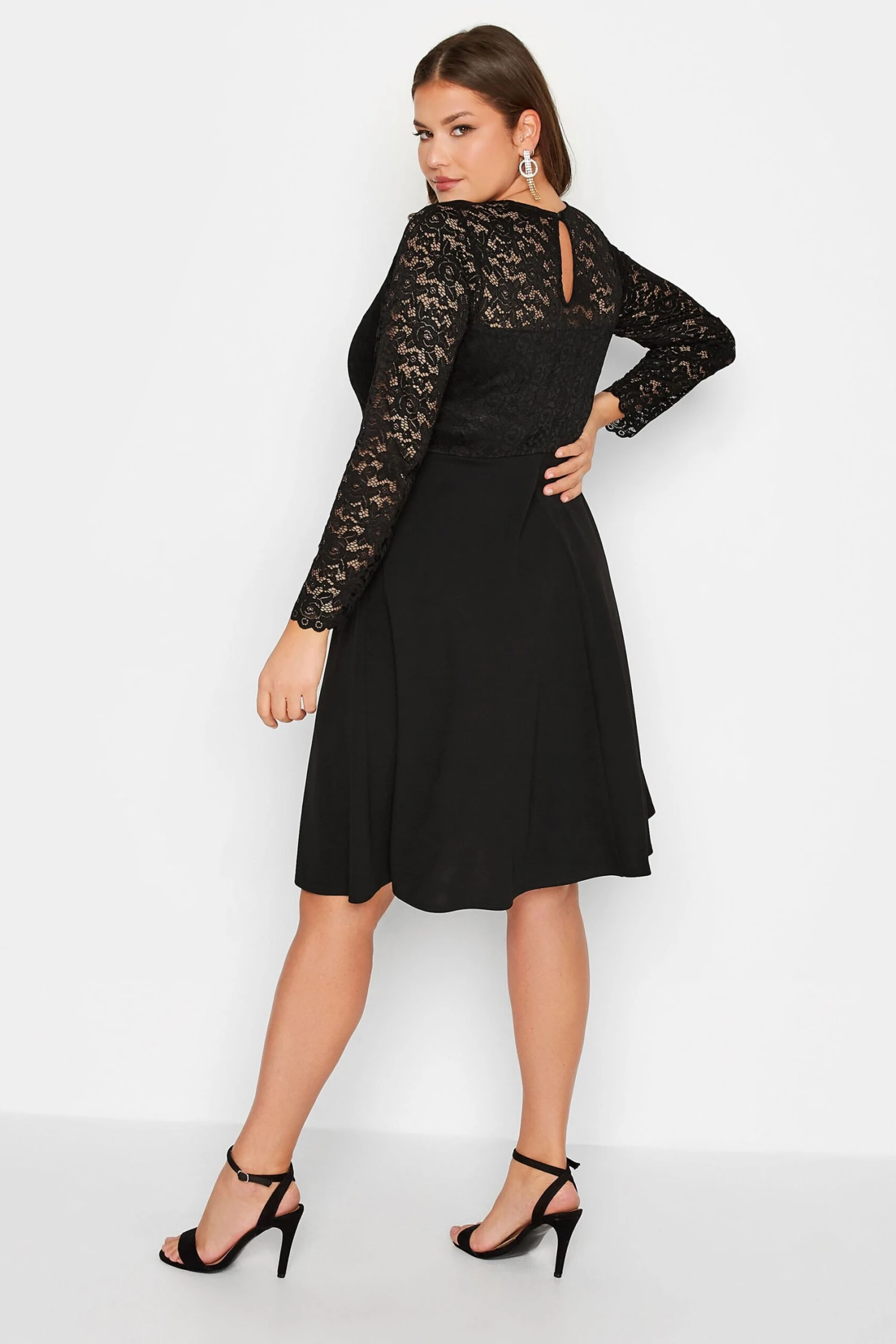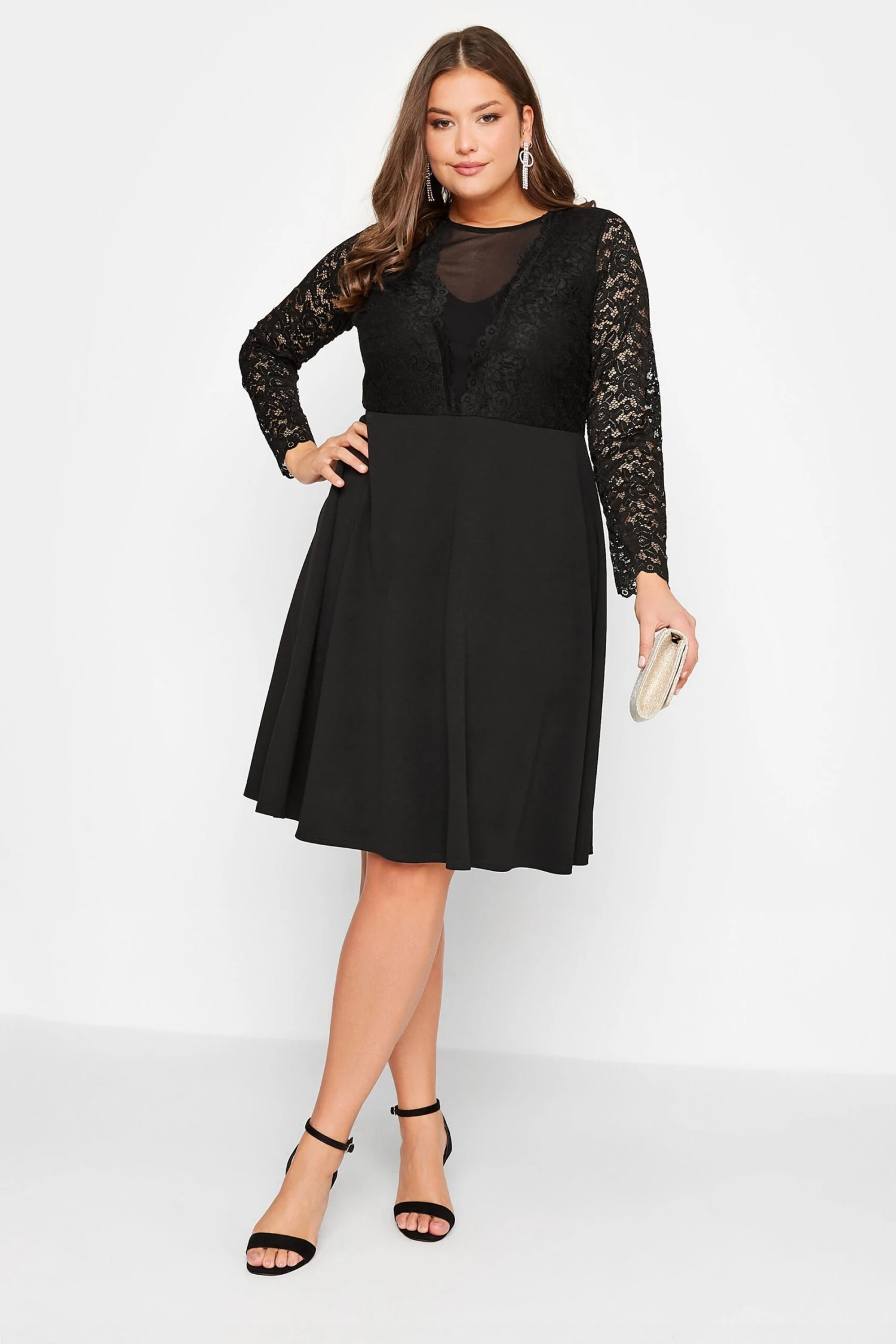 Invest in elegant evening wear with this plus size wedding guest dress, exclusive to Yours London. Made from a comfortable jersey fabric, it features long sleeves in a plunge design with a scoop neckline, complete at a midi length. Style with heels and a clutch bag to look and feel your best.