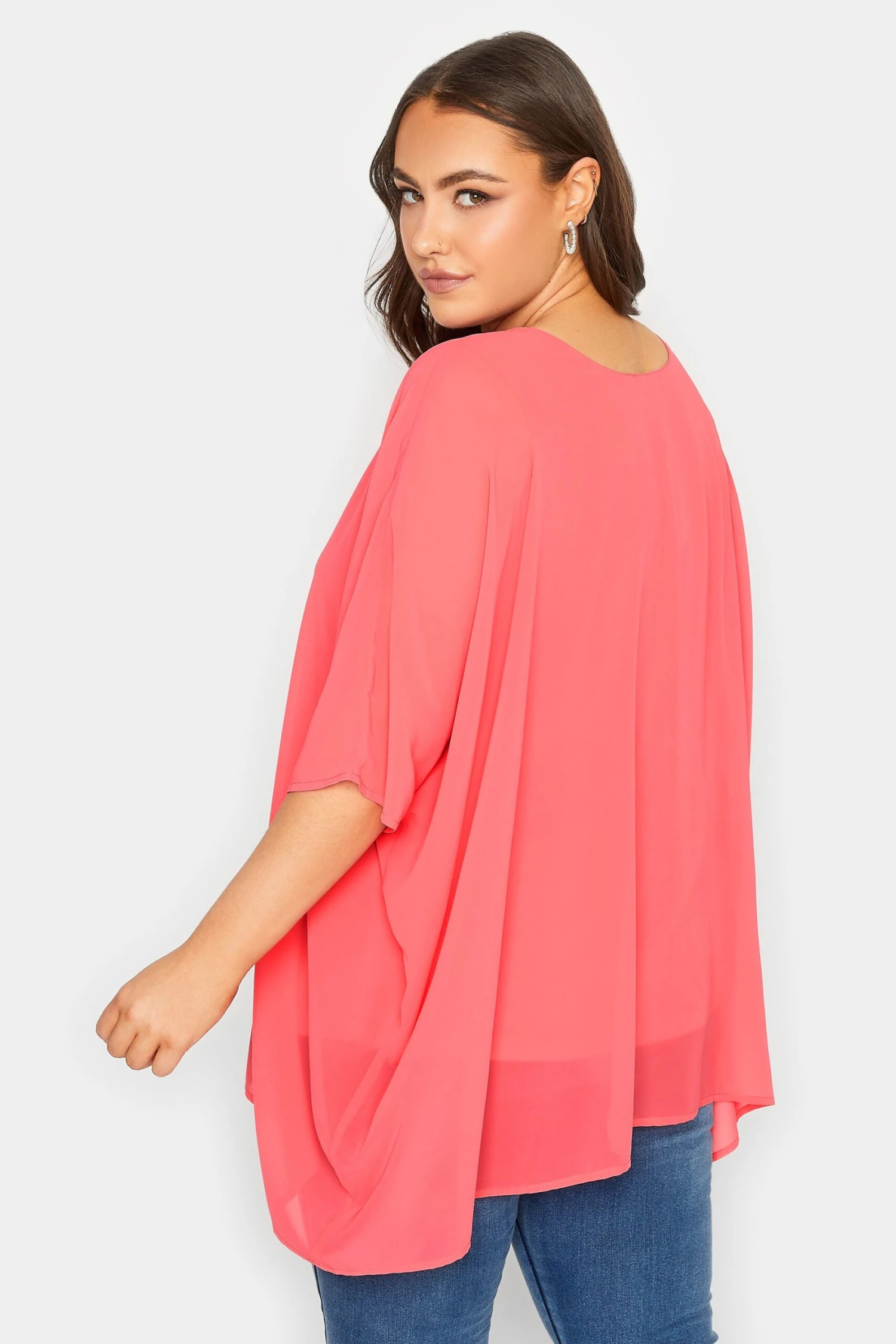 A must-have for your Yours London collection. Made from a comfortable woven fabric, this top features 3/4 length, a scoop neckline, in a cape style. Wear with jeans and heels for a stylish look.