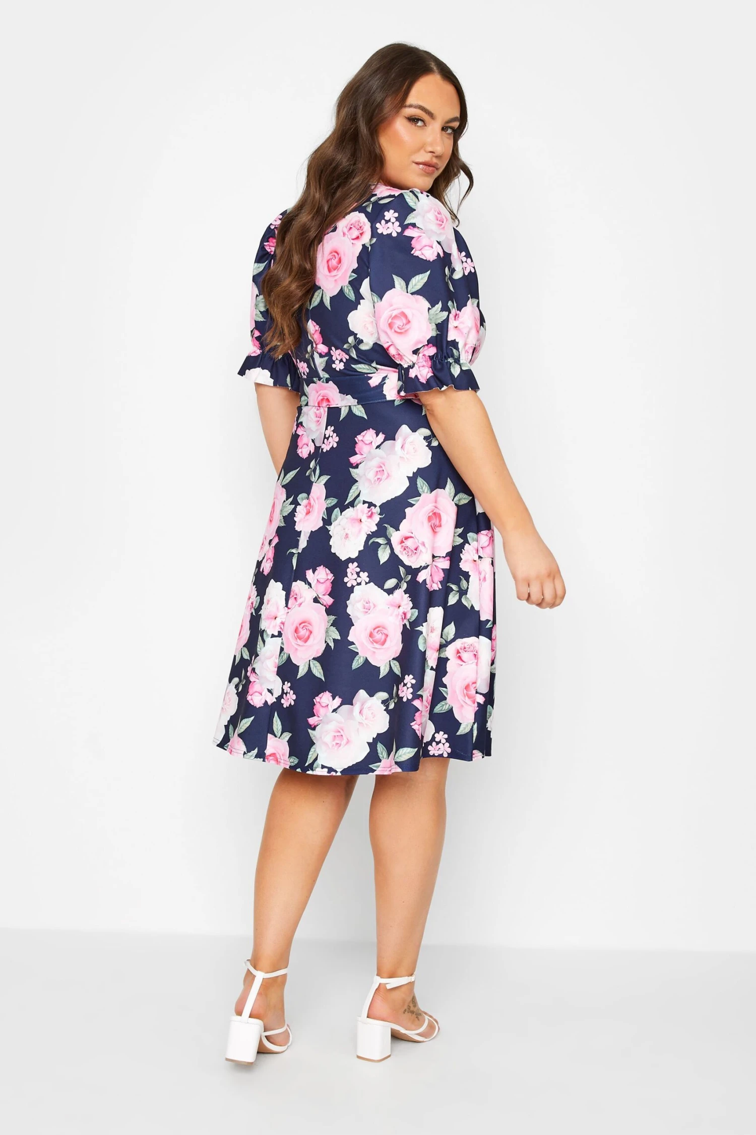 Elevate your wardrobe this summer with this floral dress exclusive to Yours London. Made from a stretch jersey fabric, this plus size wedding guest dress features short puff sleeves, a sweetheart neckline and an adjustable tie waist. Compliment with heels and a shoulder bag for your next summer event.