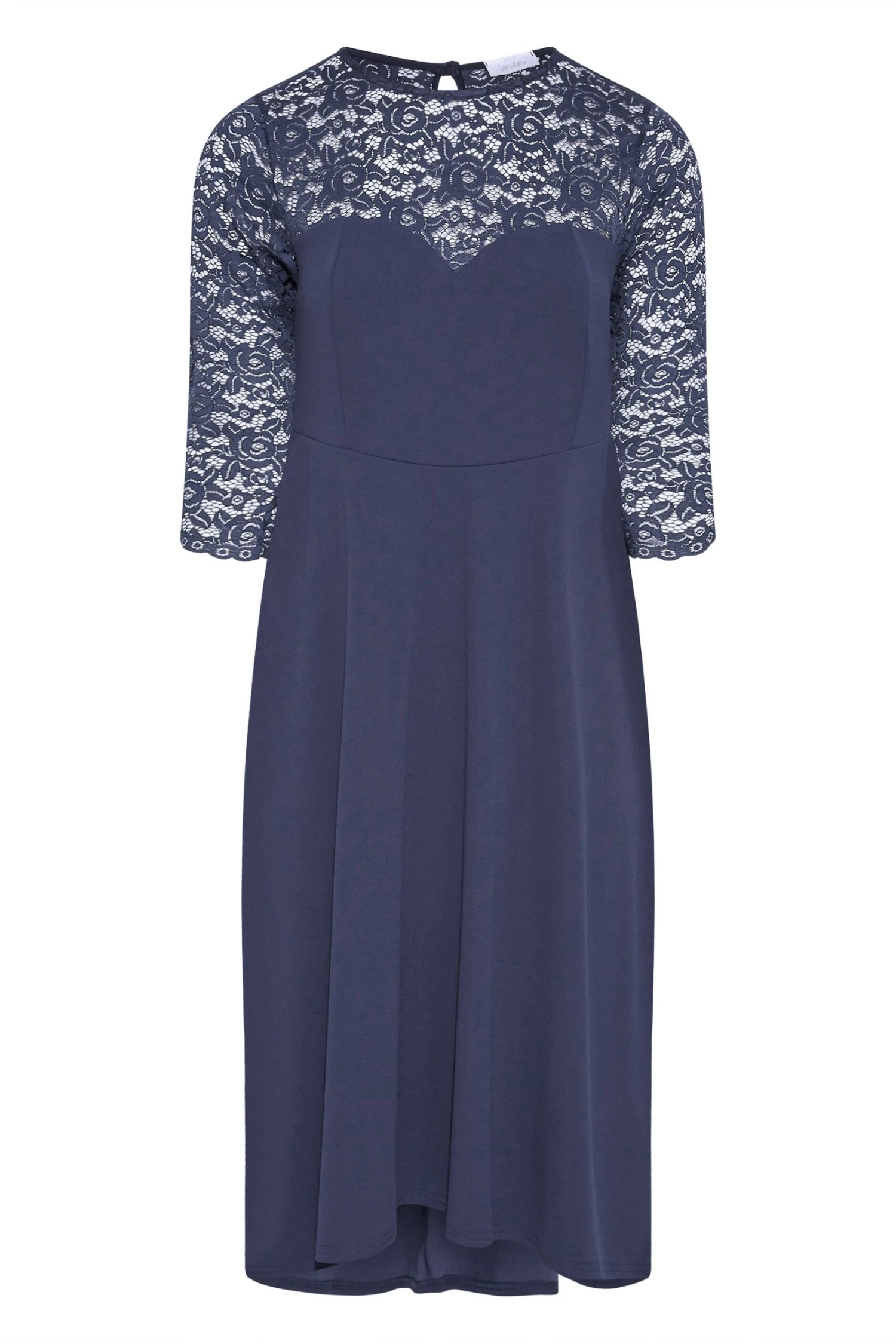 This plus size wedding guest dress from Yours London is a must-have for your next special occasion. Made in a comfortable jersey fabric, it features a lace sweetheart neckline, 3/4 length sleeves and a dipped hemline. Finishing in a midi length, simply partner with heels and a clutch bag for a look you can wear with confidence this season.