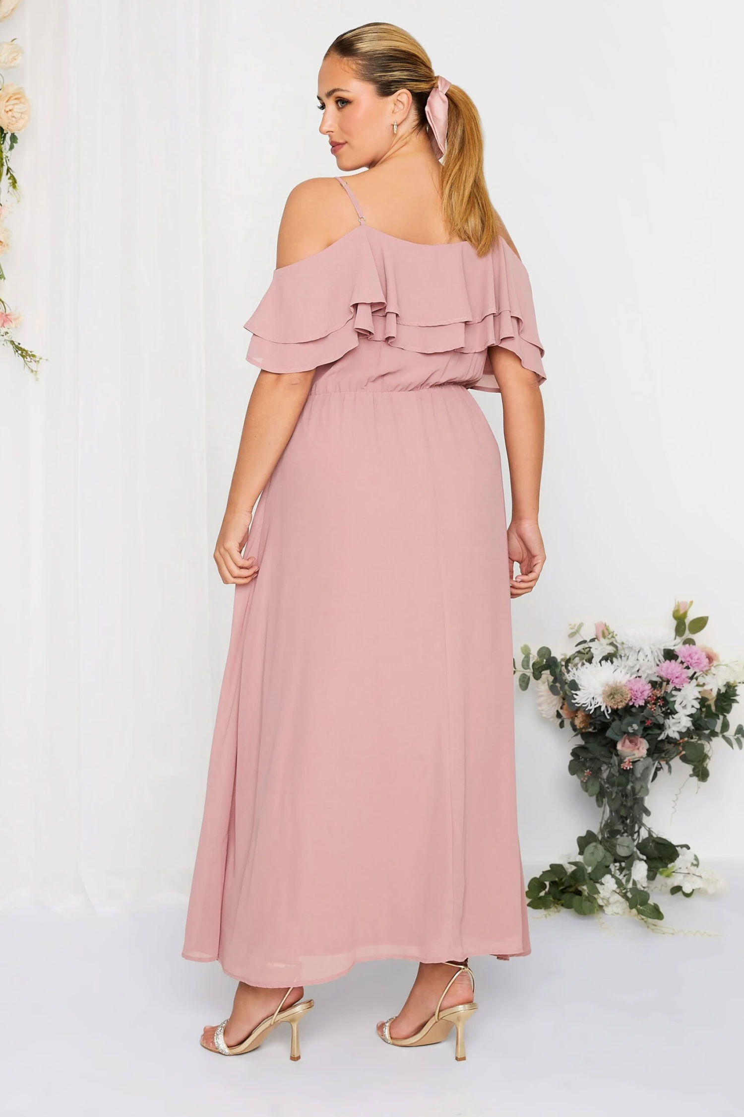 Whether you’re a bridesmaid or wedding guest, this plus size maxi dress from Yours London is the perfect option for your next special occasion. Made from a chiffon fabric, it features ruffle detail, an elasticated waistband and adjustable straps for a comfortable fit. Complete with heels for a look you can wear with confidence.