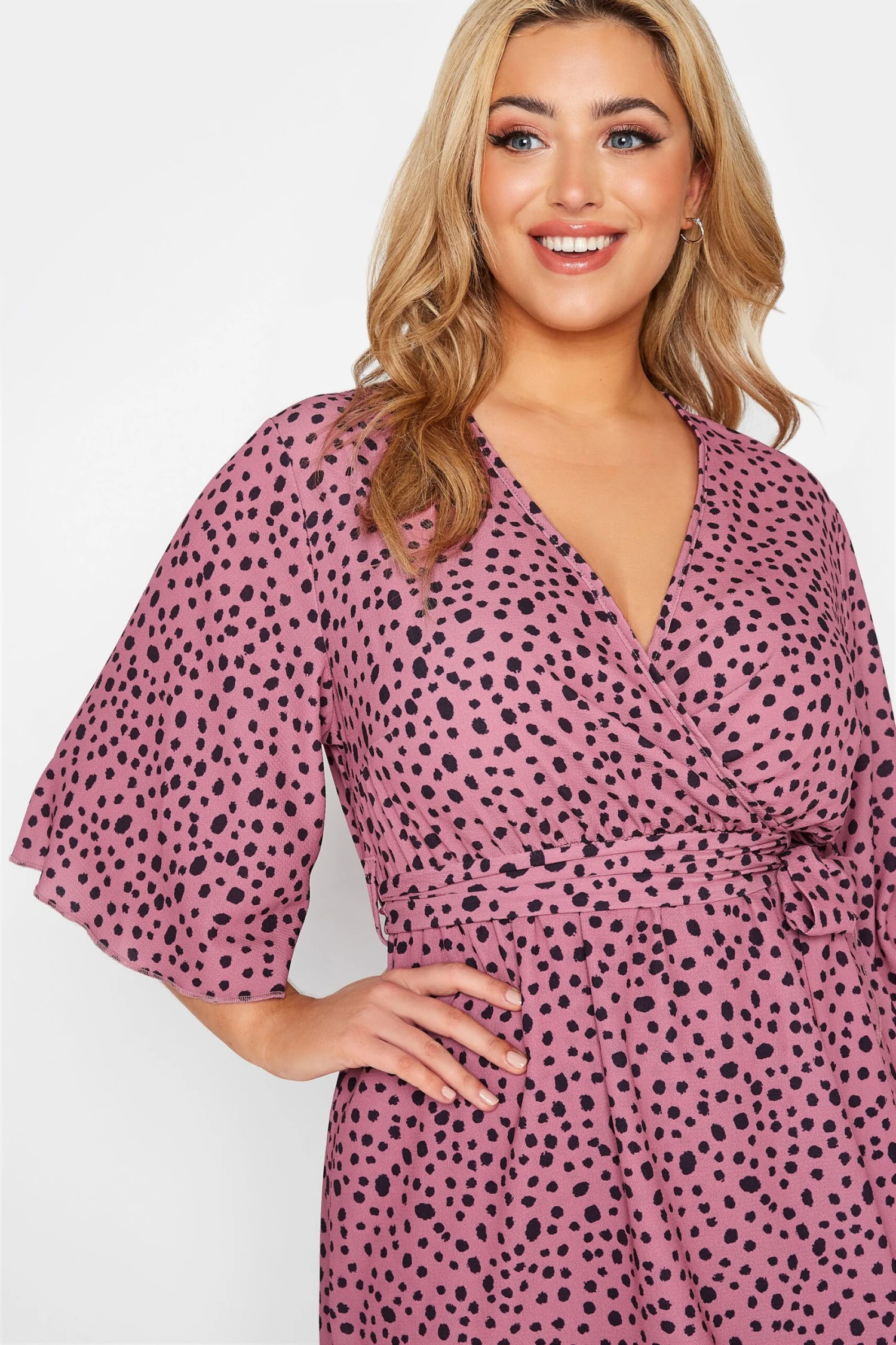 This Yours London dress was made for your next special occasion. Featuring a v-neckline and wrap style, with a belted tie waist, this dress is super flattering as well as stylish with this trendy animal print. Partner with black heels and a shoulder bag for a look you can wear with confidence.