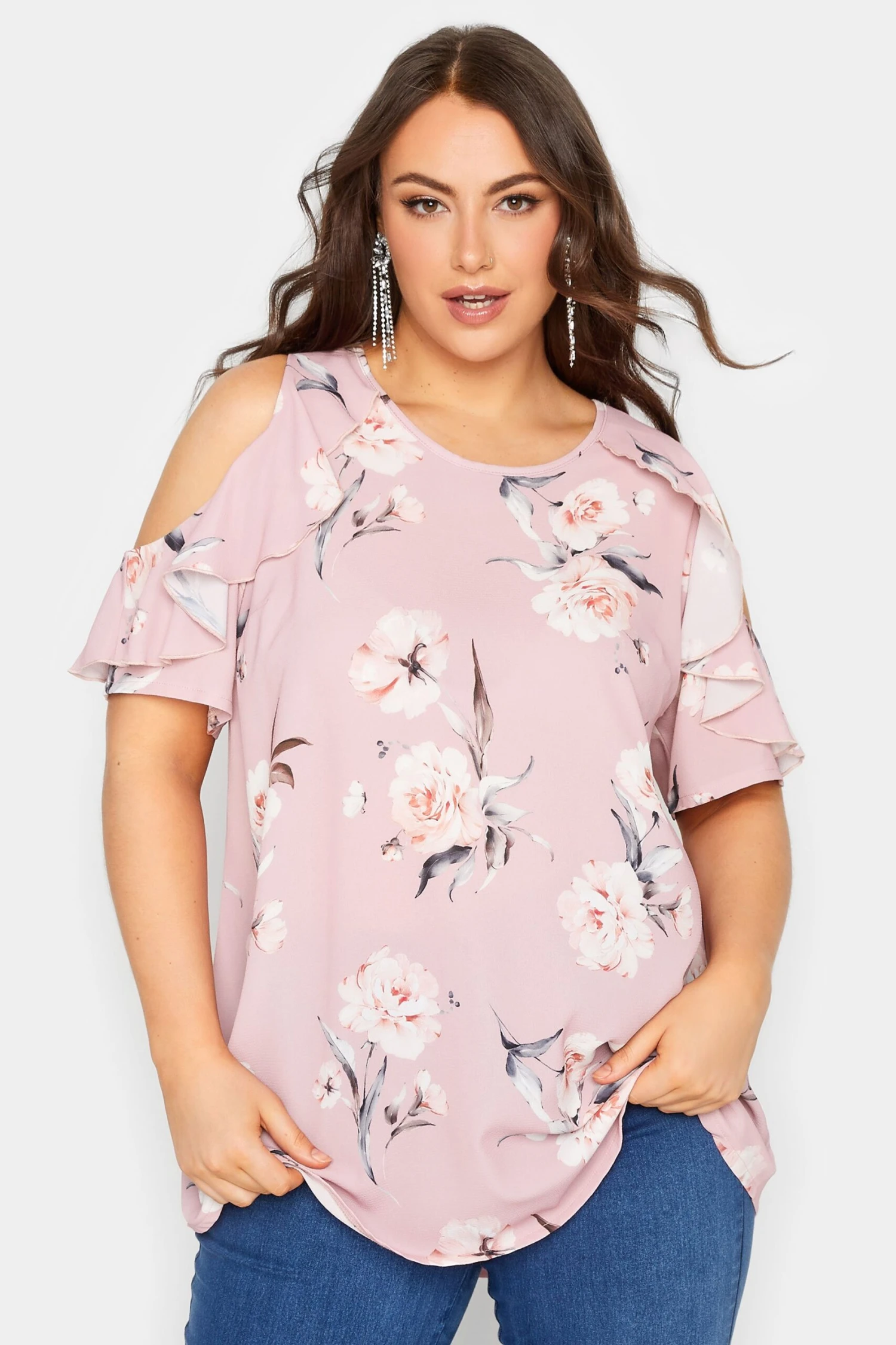 It’s time to add something new to your wardrobe. This new-in Yours London cold shoulder top in a floral print with a scoop neckline, complete with frill detail. Style with jeans and heels for a flattering look you can rely on.