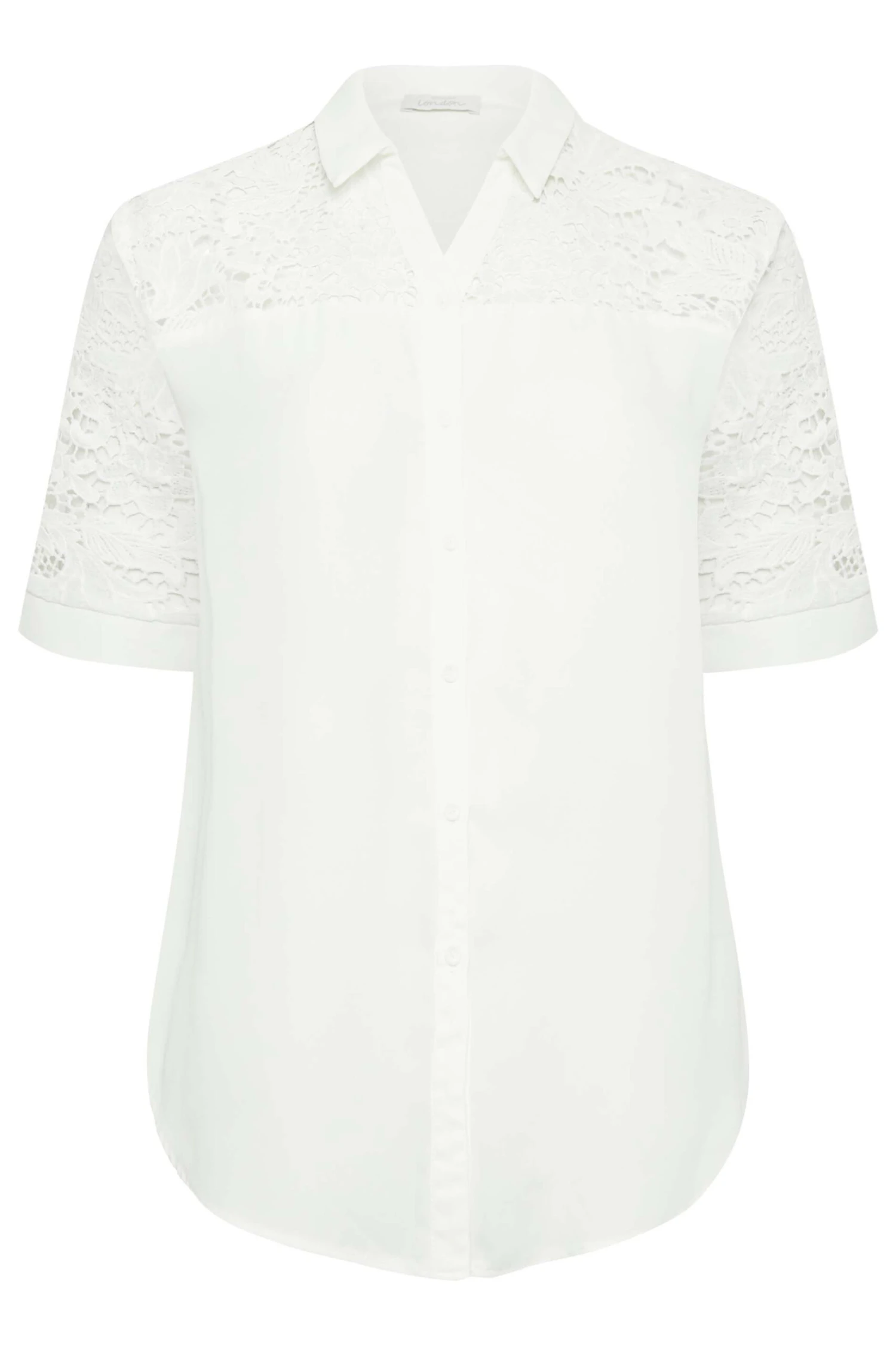 Elevate your wardrobe with this white lace insert shirt from Yours London. It features 3/4 length sleeves with a classic collar and button through fastenings. Pair with your favourite jeans and heels for a smart-casual outfit.