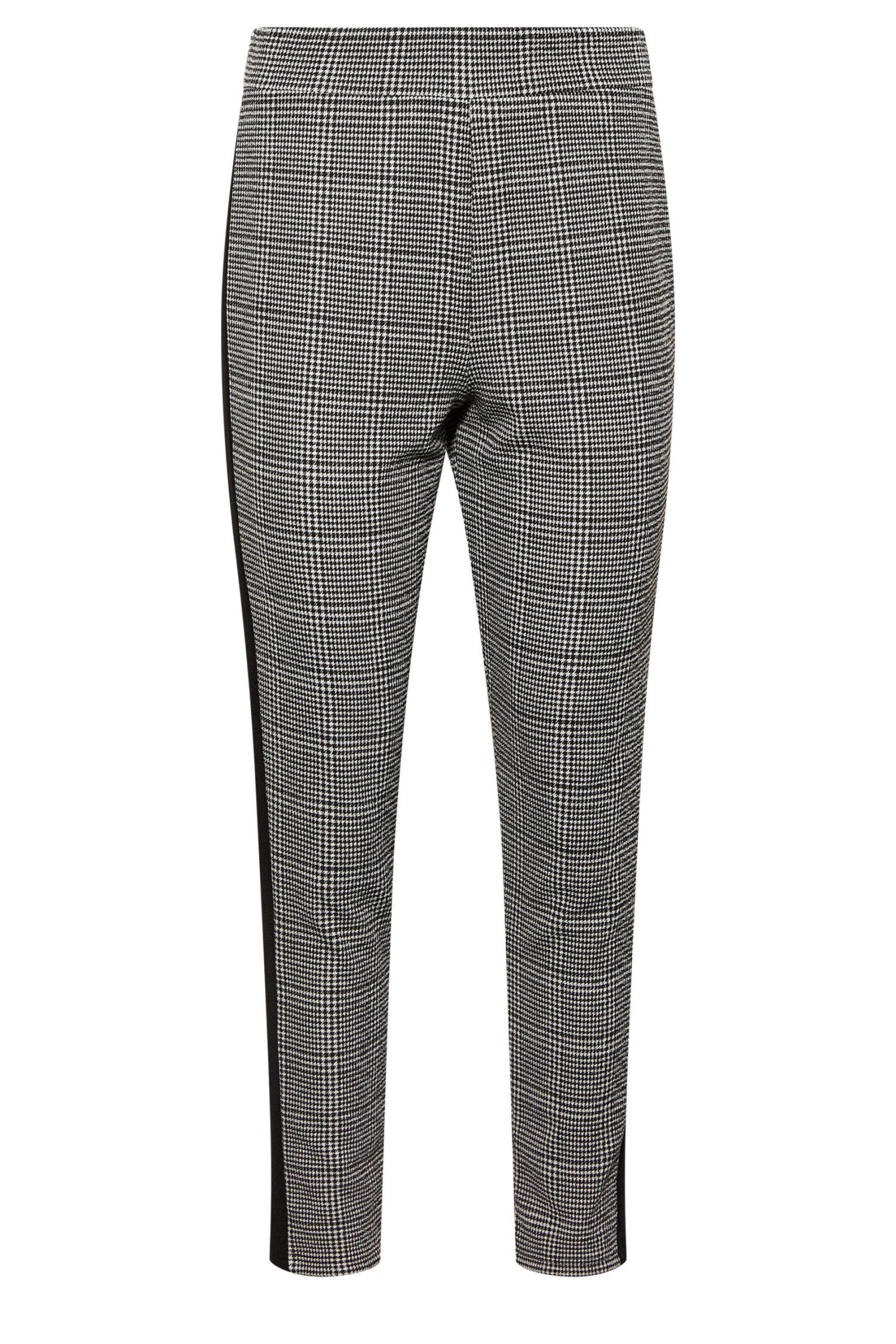 These new-in slim leg trousers are a workwear essential. Made from a comfortable jersey fabric, they feature a check print with side panel detail and an elasticated waistband. Team with a shirt and loafers for an effortless and on-trend look.