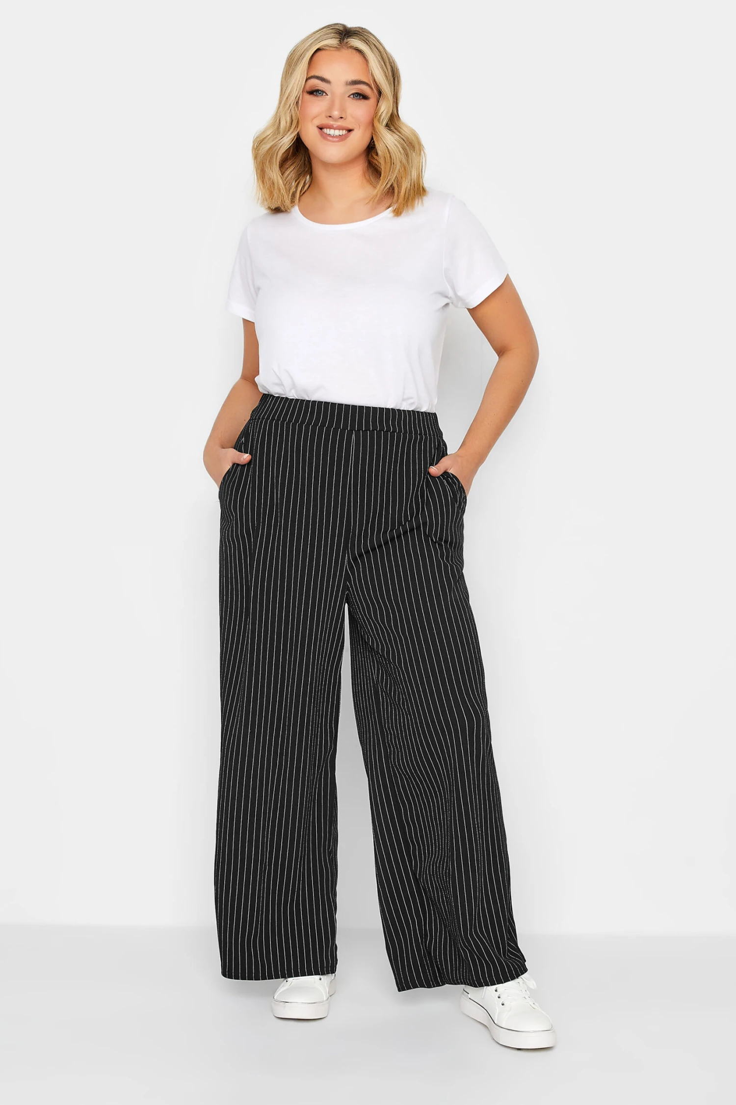 Upgrade your new season collection with these new-in wide leg trousers. Made from a comfortable jersey fabric, it features a pinstripe design and an elasticated waistband. Team with a shirt and heels for the perfect workwear look.