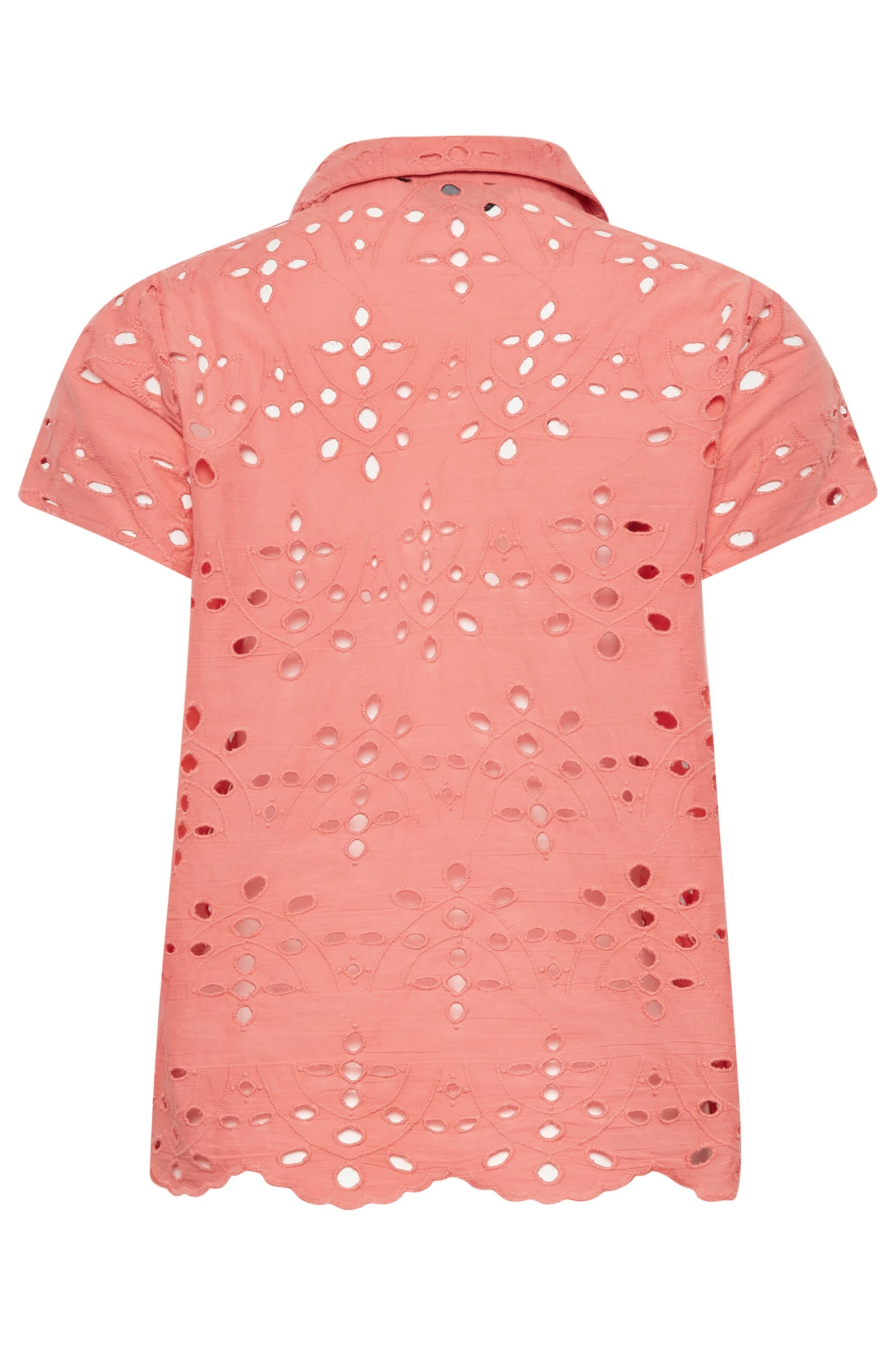 This trendy broderie shirt is perfect for the upcoming season. Made from 100% cotton, it features button fastenings, a classic collar and short sleeves with an all-over broderie anglaise pattern. Pair with your favourite jeans and sandals for a timeless summer outfit.