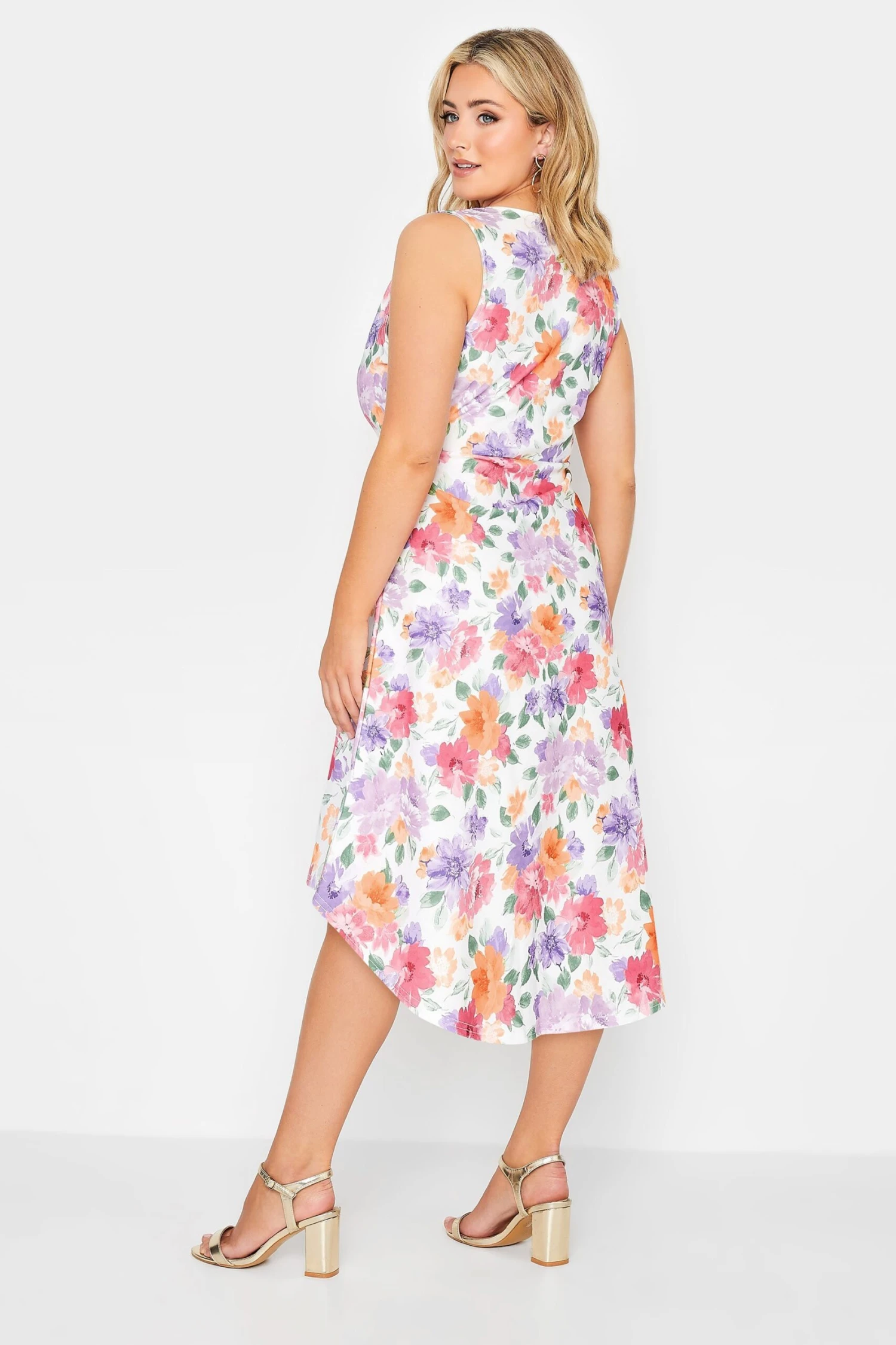 Introduce this new-in midi dress into your new season collection. Made from a comfortable jersey fabric, it features a floral print with a sleeveless design and dipped hemline. Simply pair with heels for a look that is perfect for your next special occasion.