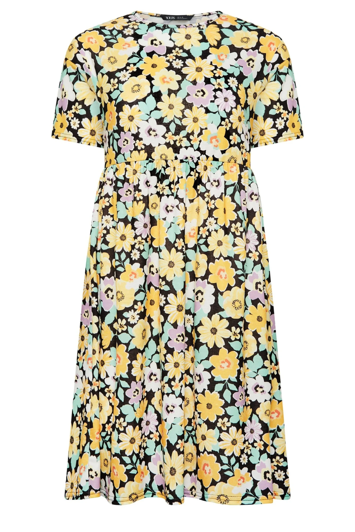 A bright print to start the season in style. This smock dress features short sleeves and a scoop neckline, complete in a floral print design. Simply style with trainers or sandals for a casual summer look.